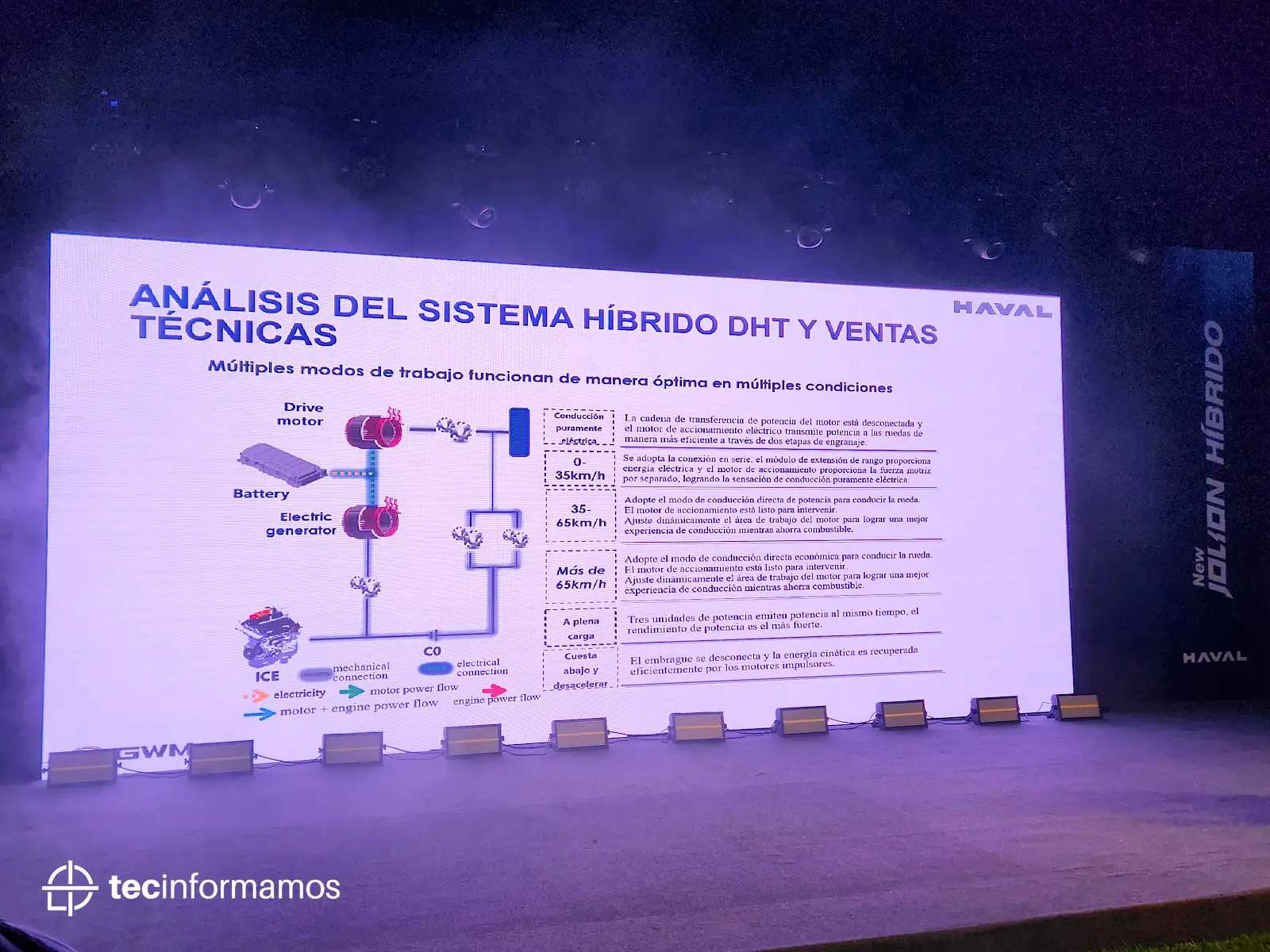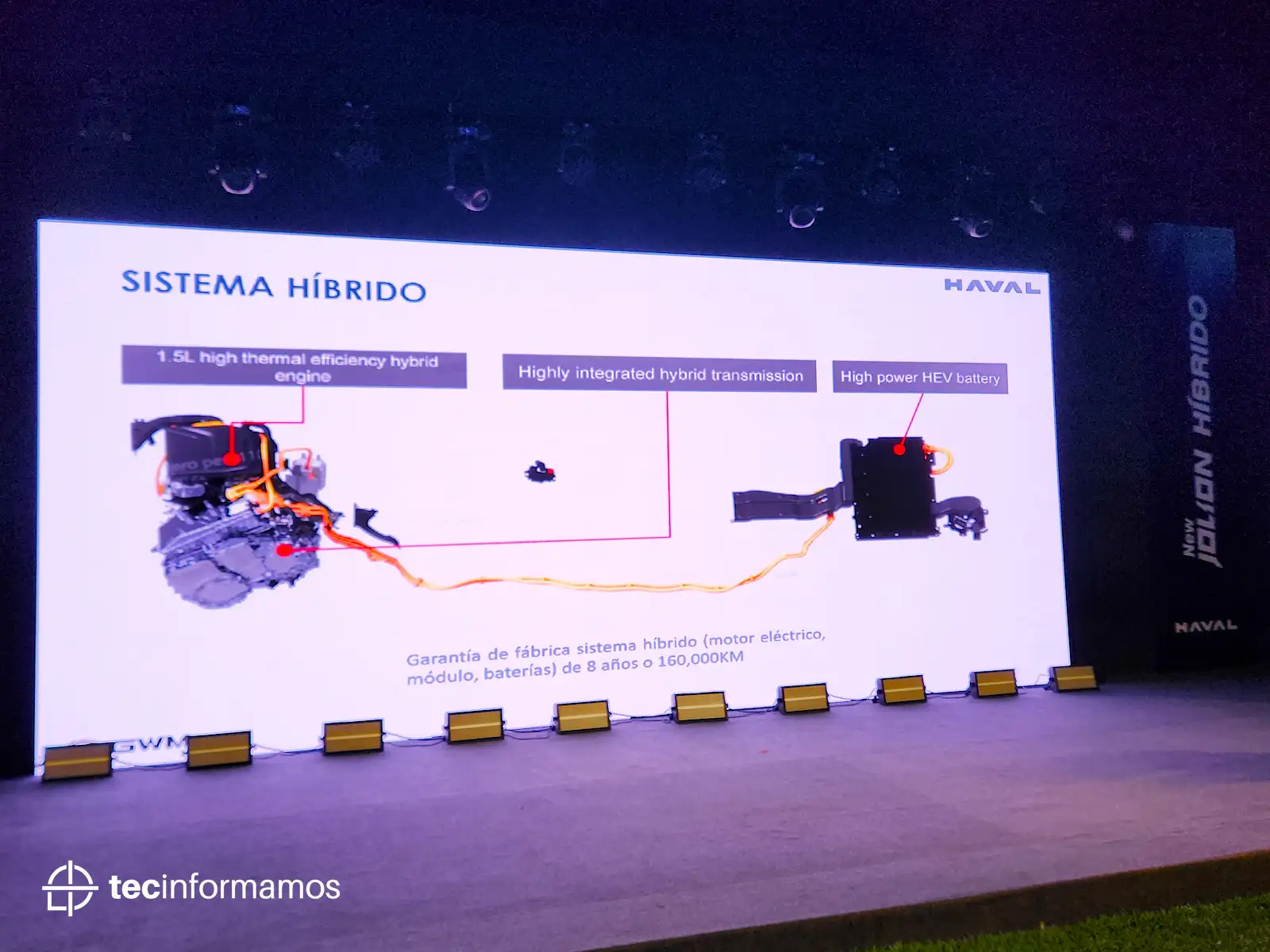 El Haval Jolion Híbrido viene con un motor 1.5L Turbo (94HP, 125 Nm de torque) y un motor eléctrico (154HP, 250 Nm de torque) que en conjunto generan 186HP y 375 Nm de torque.