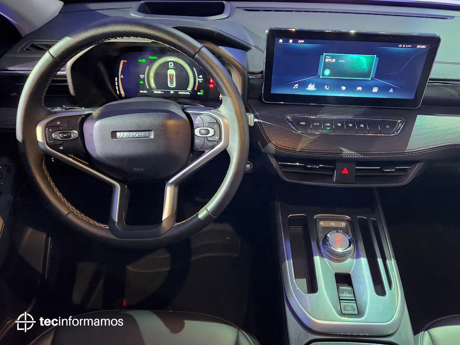 El interior del Jolion Híbrido luce bastante elegante y minimalista. La consola central está dominada por una generosa pantalla táctil de 12.3″, mientras que el clúster de instrumentos es 100% digital (pantalla de 7″).