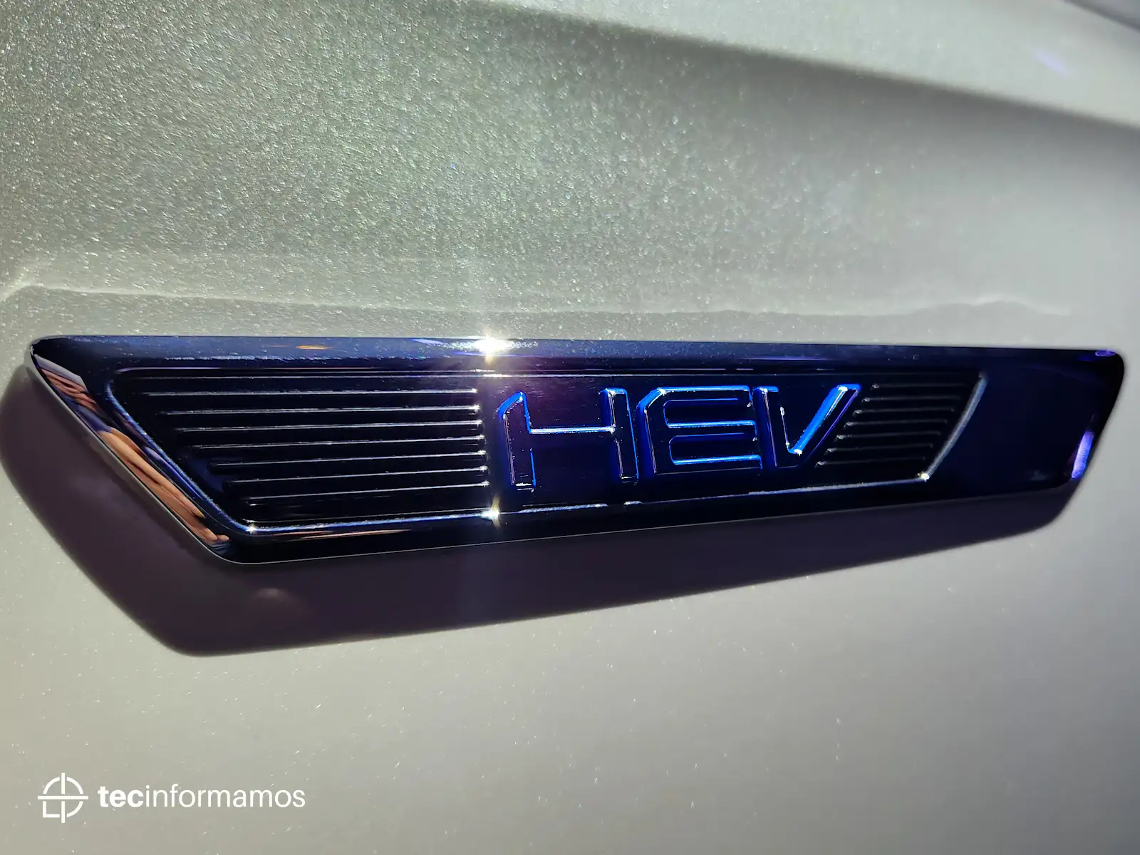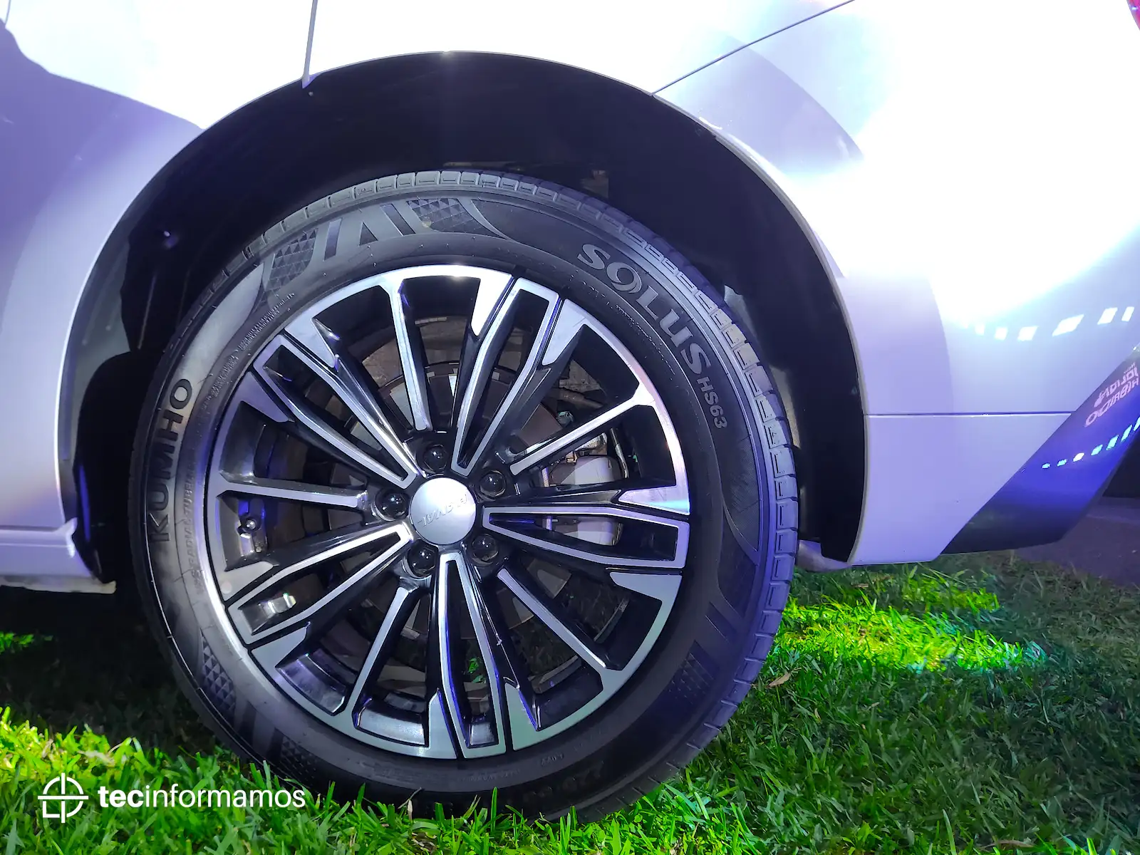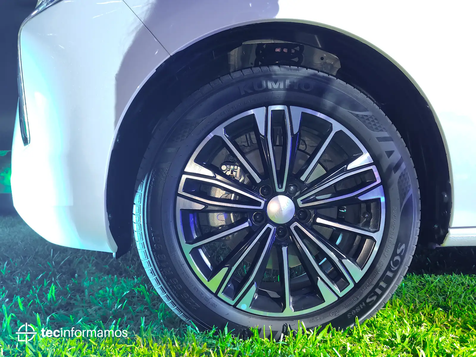 Por el lado podemos ver la presencia del logo HEV (Hybrid electric vehicle); además, también observamos los neumáticos KUMHO Solus HS63 con medidas 225/55R18 98V.