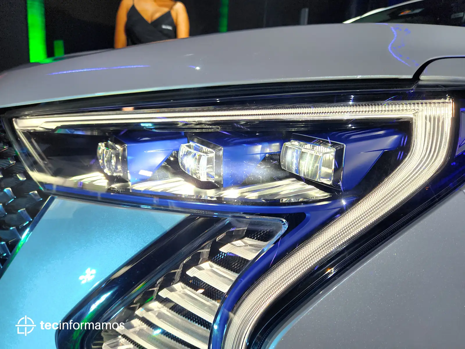 El frente del Haval Jolion Híbrido está dominado por una imponente parrilla (Star Matrix), la cual se extiende hacia los lados y se une a los faros delanteros; estos últimos parecen cubos de hielo y se ven bastante modernos y elegantes.