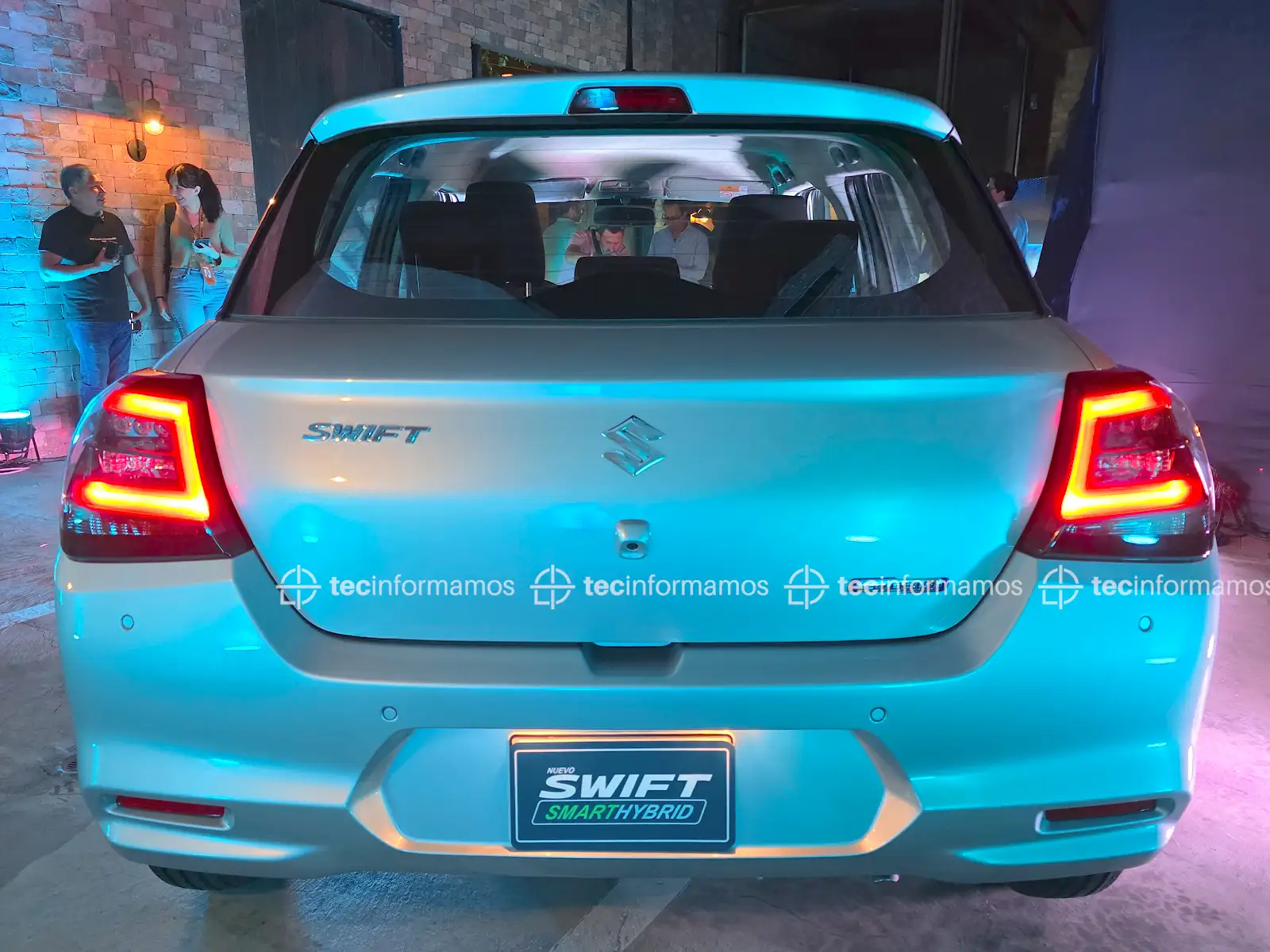 Los faros delanteros y traseros utilizan tecnología LED. Desde atrás se pueden apreciar las caderas del nuevo Swift, que ahora se ven bastante más anchas y eso marca el espíritu deportivo de este hatchback.