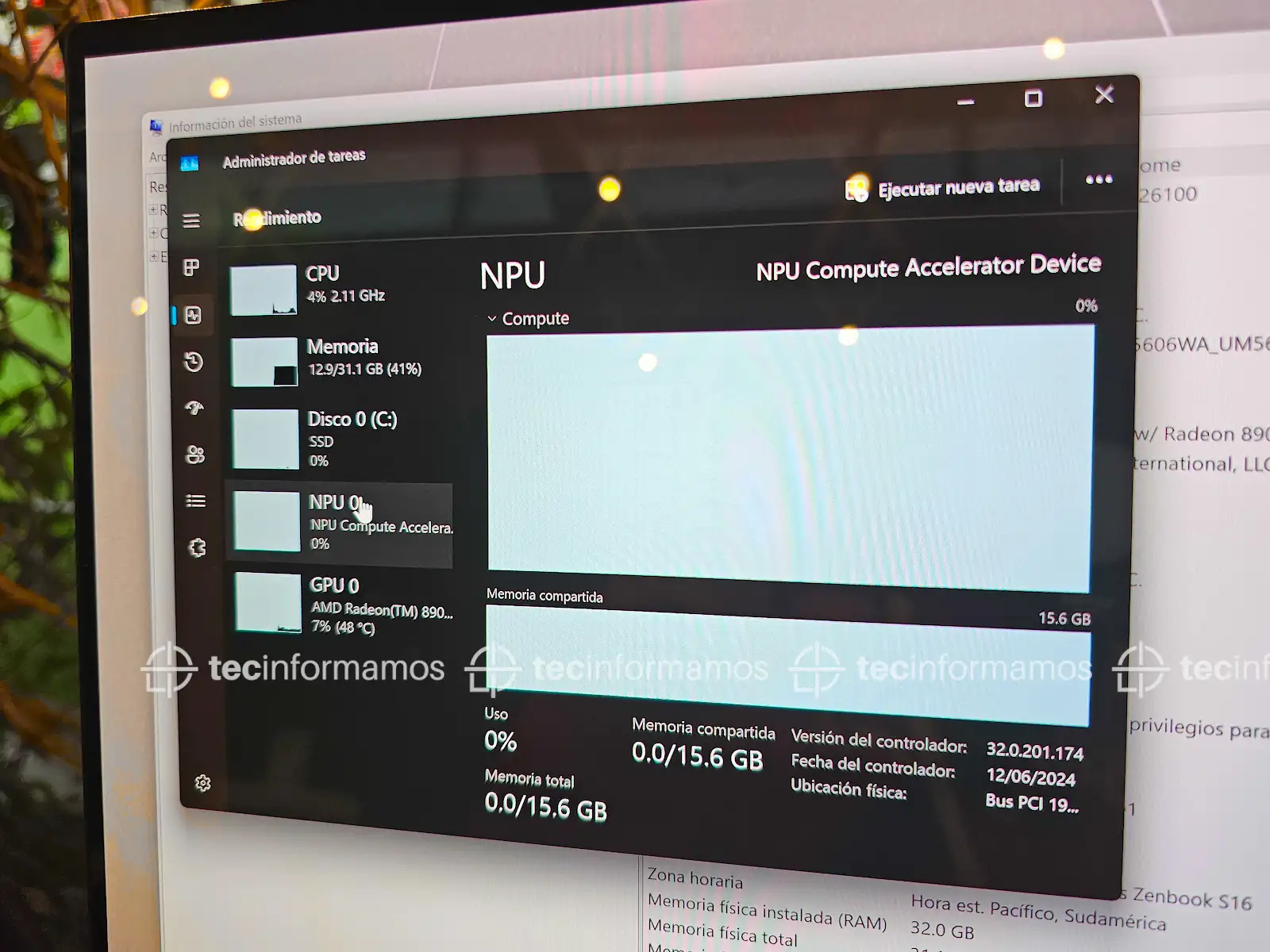 El procesador de la Zenbook S 16 es el AMD Ryzen AI 9 HX, el cual viene acompañado de una GPU con gráficos AMD Radeon integrados, además de 32GB RAM y 1TB de almacenamiento.
