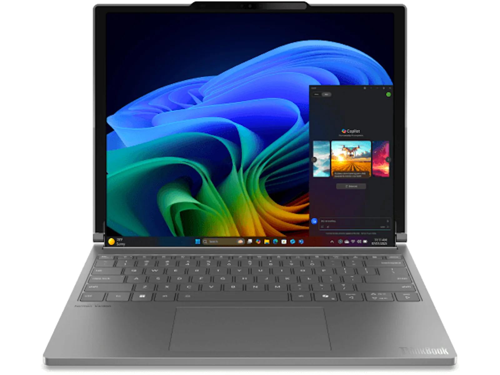 La primera imagen muestra la pantalla de la laptop (Blass asegura que es la Lenovo ThinkBook Plus de 6a. generación) y la podemos ver en su estado normal (sin haber sido desenrollada).