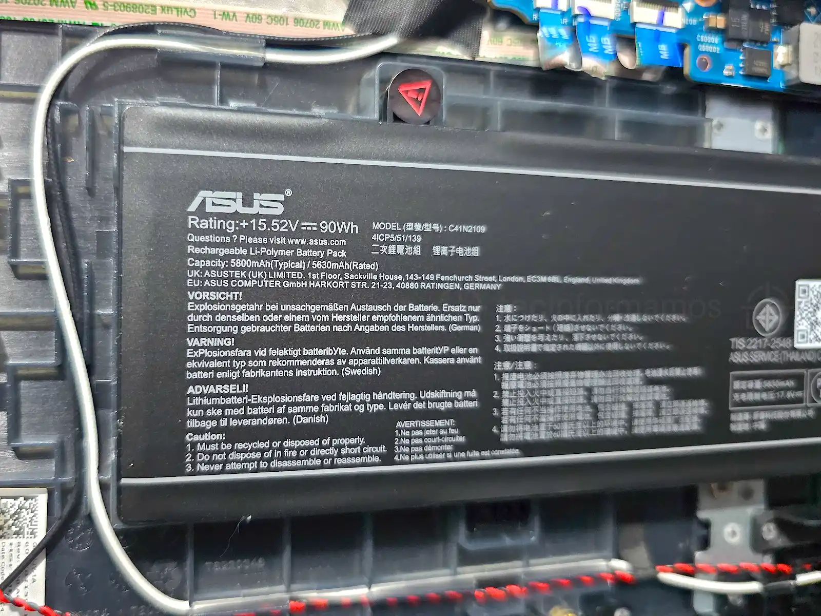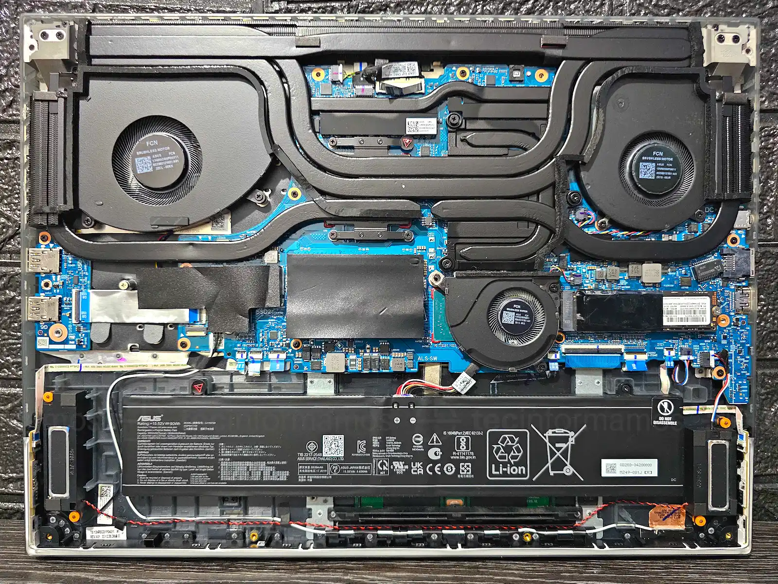 Una que otra cosita, pero nada dramático. Para empezar, esta laptop viene con una batería Li-Po de 90Wh (modelo C41N2109) y recargarla al 100% toma alrededor de 90 minutos, mientras que el 0-50% toma alrededor de 28 minutos.