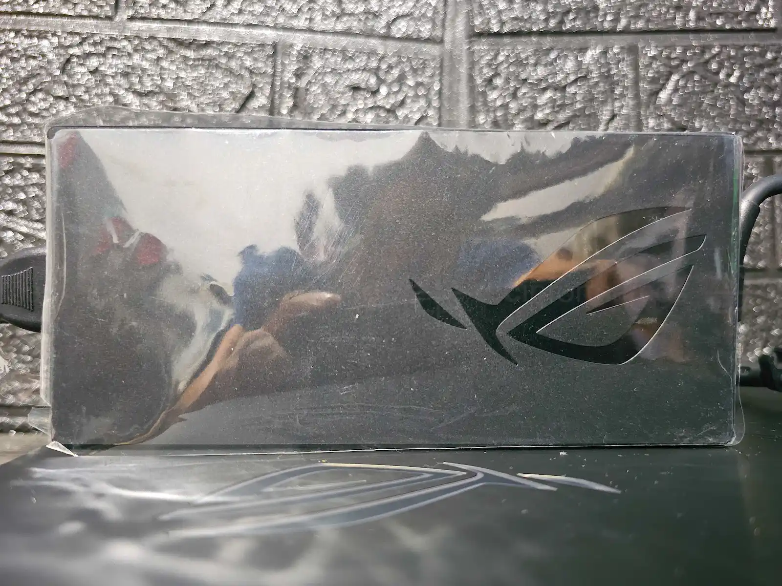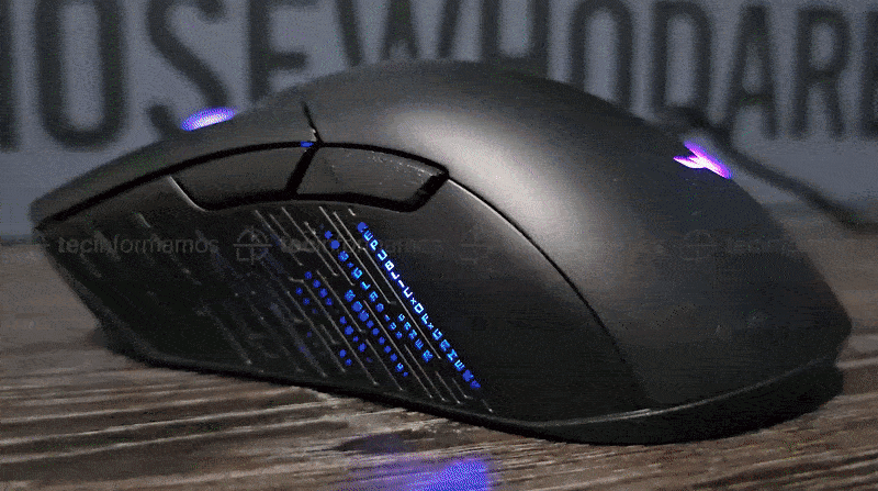 El mouse que viene en la caja de esta laptop tiene luces RGB y en la parte izquierda del mismo se pueden leer varios lemas como DARE TO LEAP, así como también el modelo del mouse (ROG GLADIUS III GAMER).