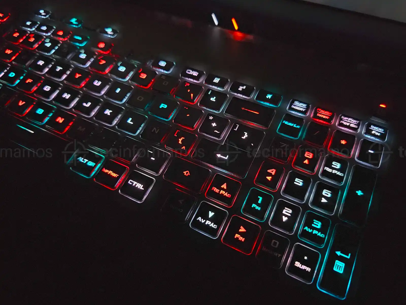 El teclado es de tipo chiclet, incluye 5 Hot Keys y es retroiluminado. La sensación al tipear no es nada de otro mundo, pero lo importante aquí es que puedes personalizar el color de cada tecla mediante software.