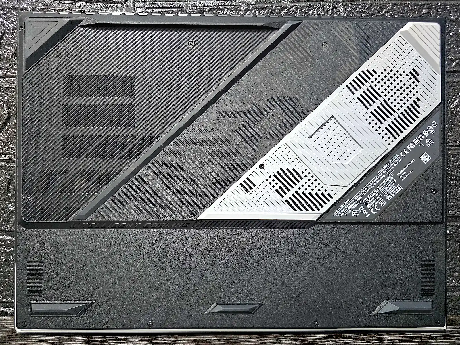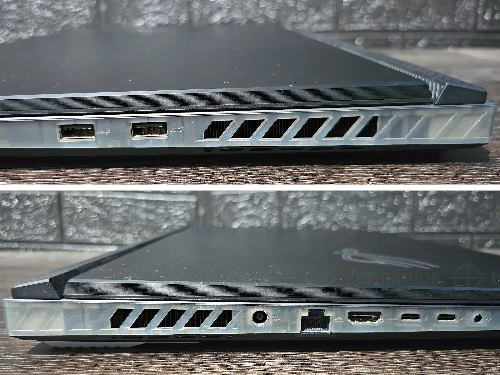 Además, si te fijas bien podrás ver varias letras en alto relieve en la parte trasera de la laptop. Obviamente, este es un easter egg de la división gamer de ASUS (REPUBLIC OF GAMERS).
