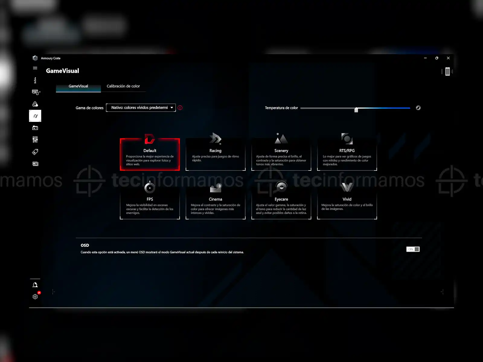 Se nota que ASUS ha invertido bastante tiempo en la calibración de esta pantalla, ya que por defecto se ve excelente. Eso sí, también hay una opción (GameVisual) desde la cual puedes calibrar la pantalla, pero para eso necesitarás el calibrador X-Rite i1Display Pro.