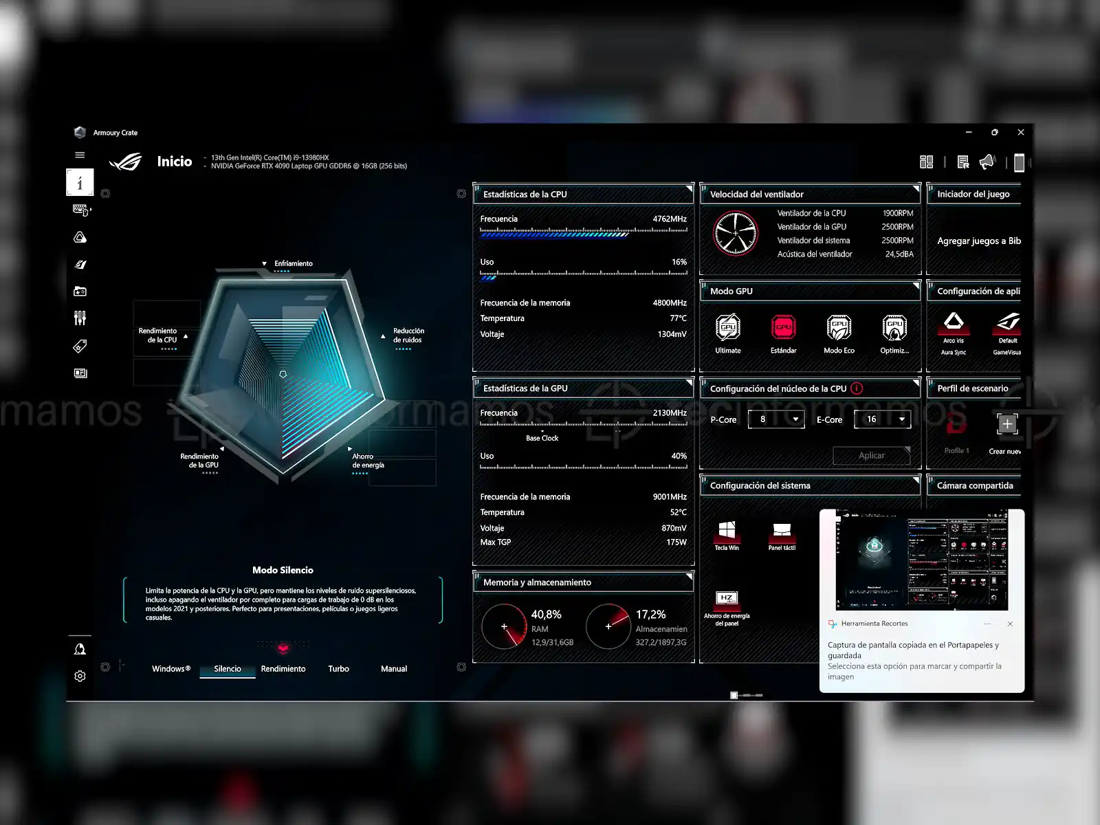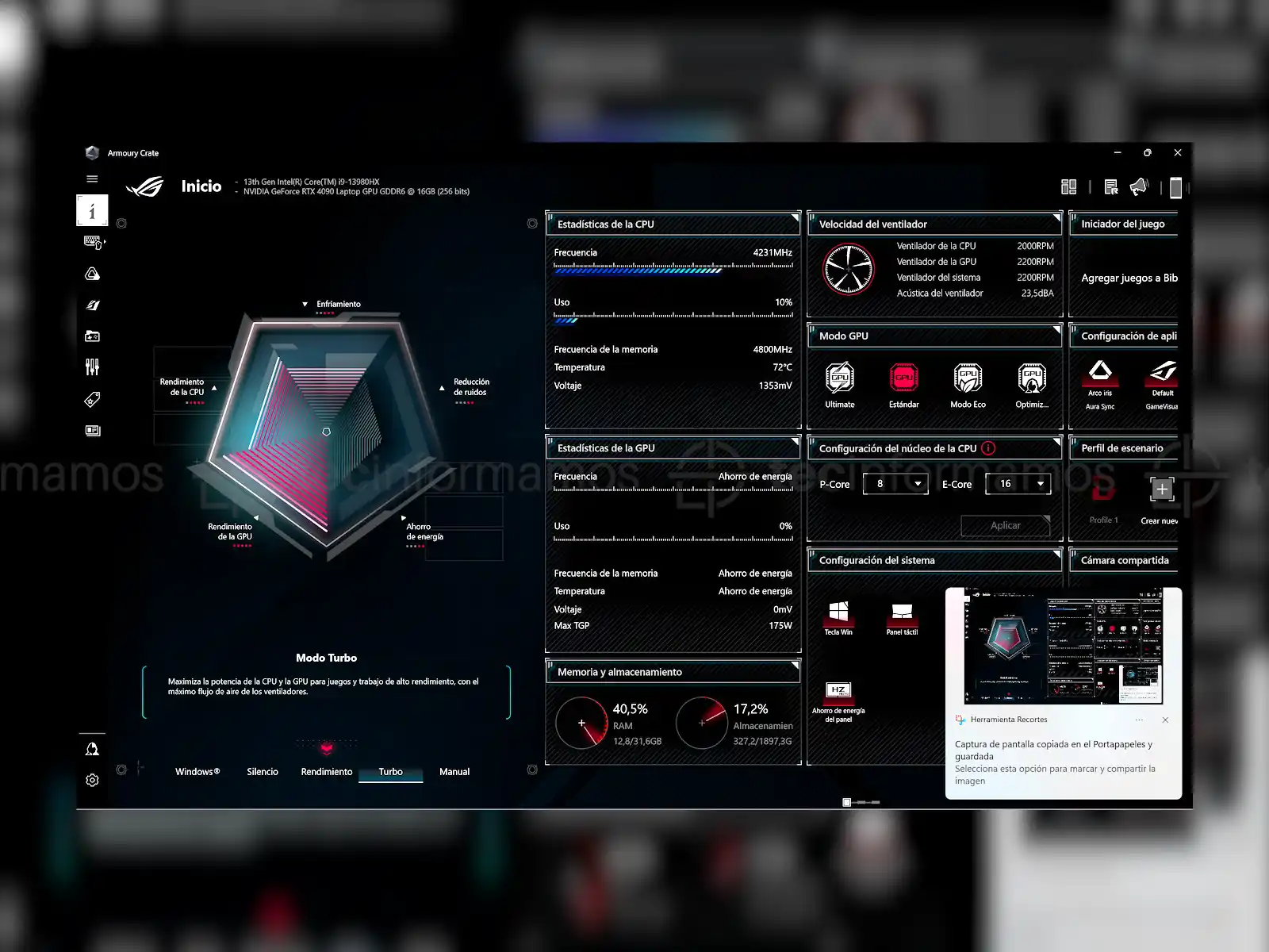 Ya para cerrar, también me gustó el software que viene pre-instalado en esta laptop y no hablo de Windows 11, sino de Armoury Crate. Esta suite permite personalizar absolutamente todos los aspectos visuales y funcionales de la ASUS ROG Strix Scar G18.