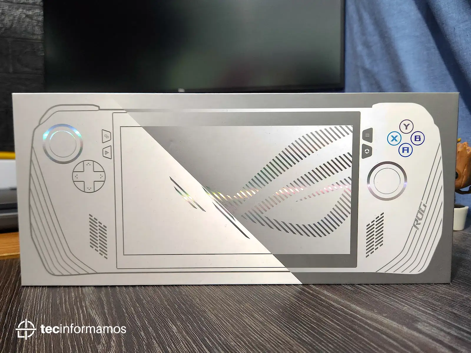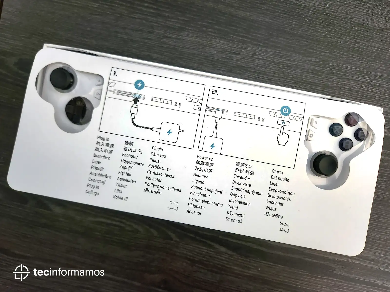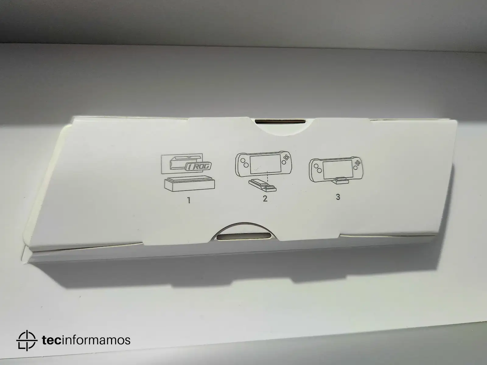 Como dato curioso, la caja también incluye un stand en el cual puedes apoyar la consola; el stand parece estar construido de plástico pero aún así ofrece un buen apoyo para la ROG Ally.