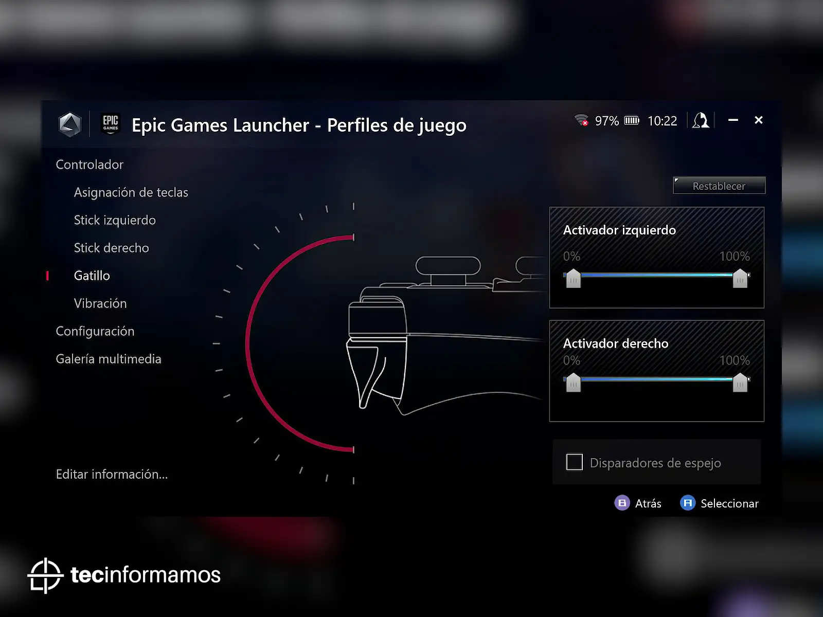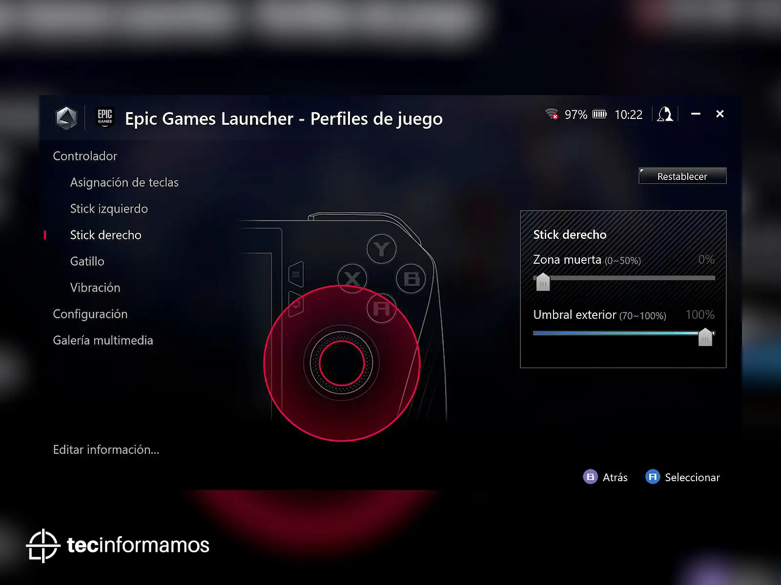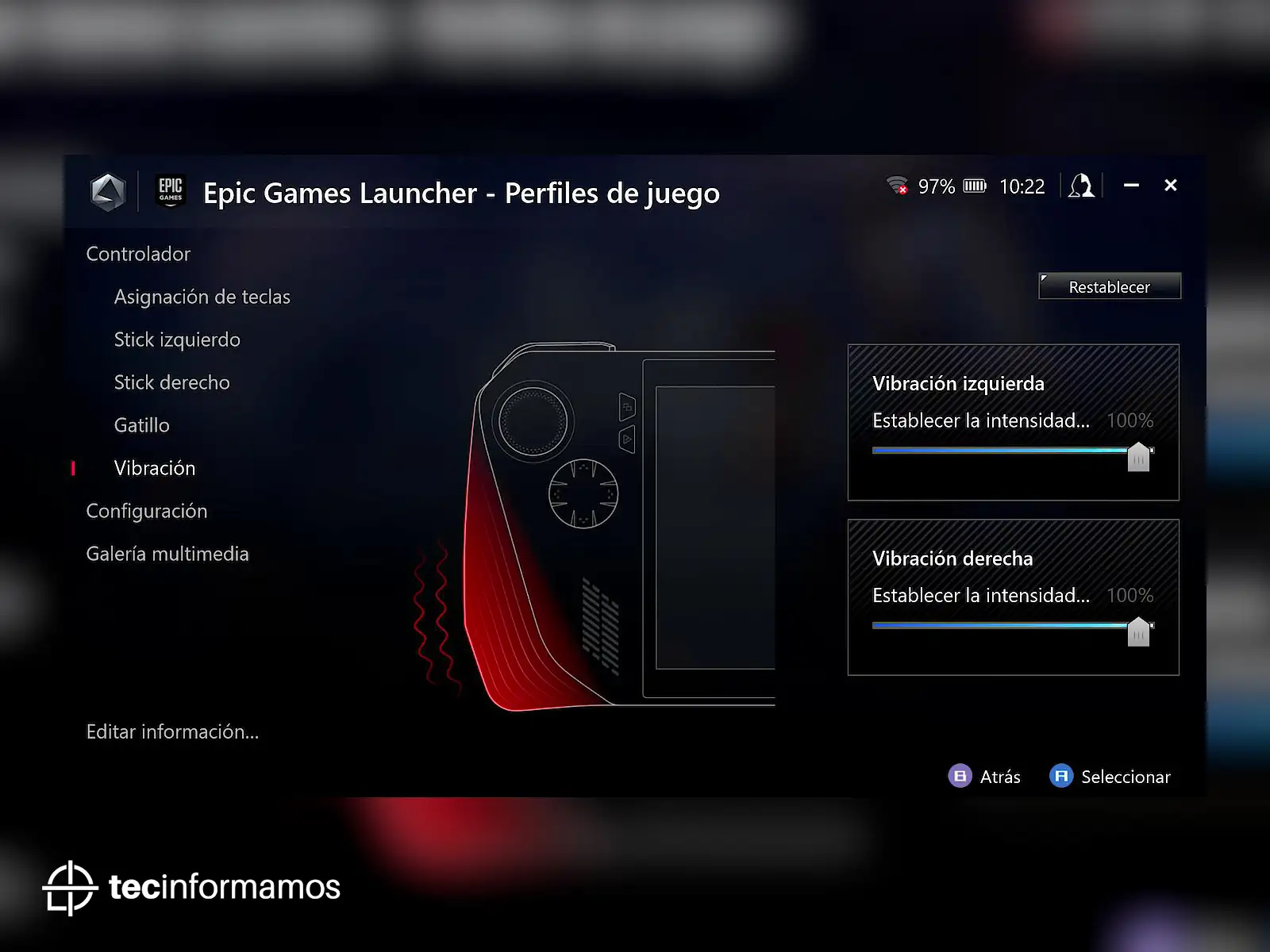 Pero, sin lugar a dudas, lo más importante que ofrece Armoury Crate son las opciones de personalización: desde asignar atajos a los botones, gatillos, sticks, hasta personalizar el tipo de brillo RGB o incluso la vibración.