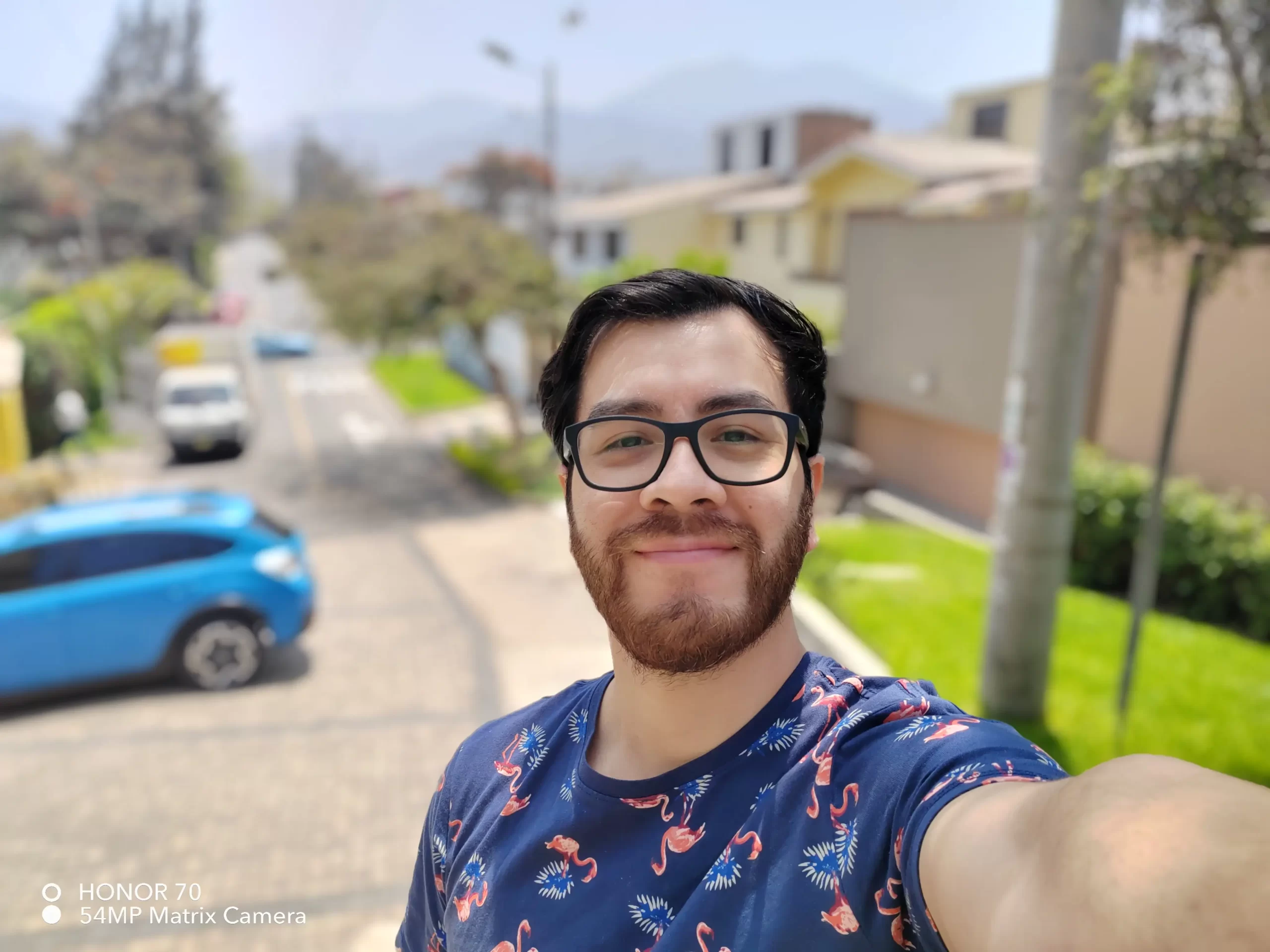 La cámara frontal del HONOR 70 tiene 32MP, por defecto arroja fotografías de 8MP, y captura selfies con buen nivel de detalle y con un HDR bastante llamativo.