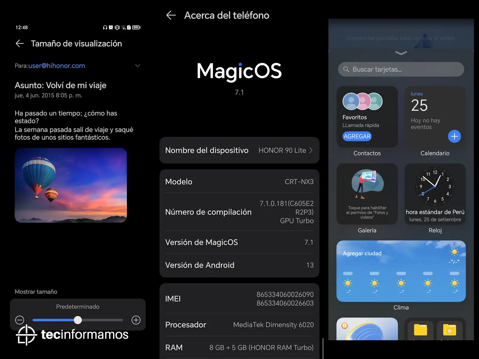 Ah, y si hablamos de software, el 90 Lite viene con los Servicios Móviles de Google pre-instalados, además de MagicOS 7.1 corriendo por encima de Android 13.