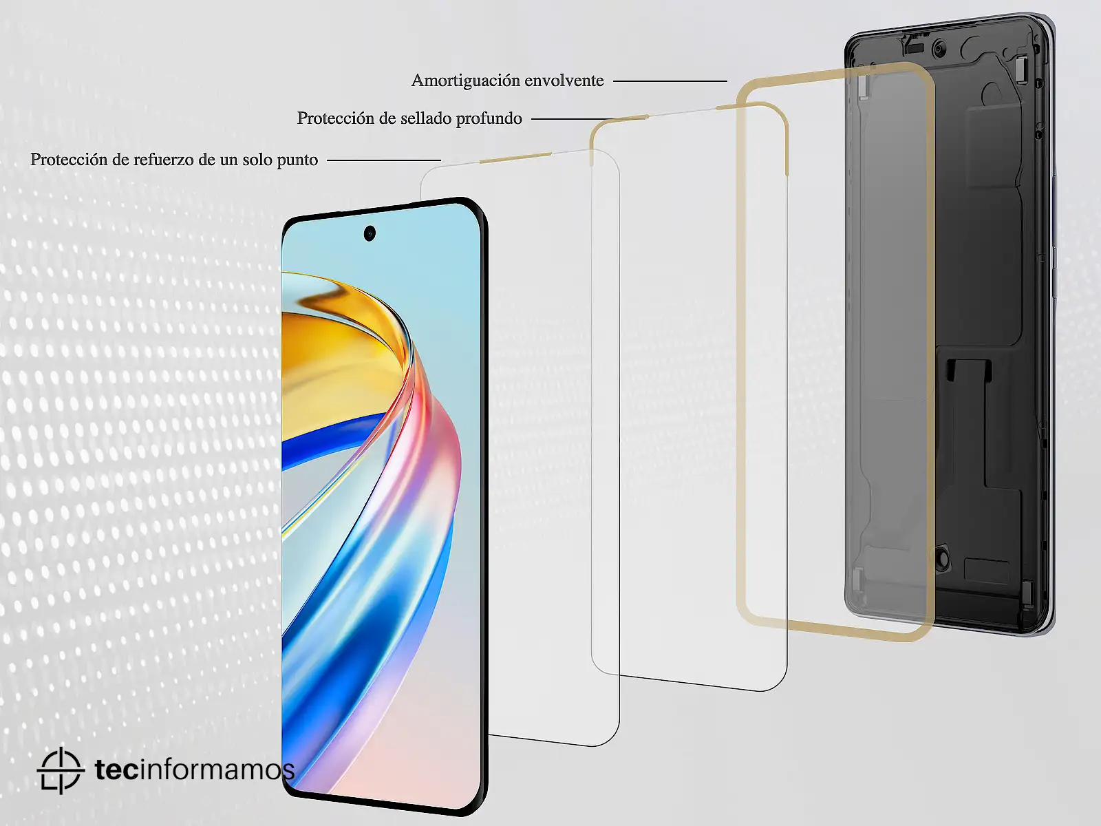 Para lograr esto, HONOR utiliza un material de amortiguación con poros del tamaño de una micra, el cual puede absorber hasta 1,2 veces el impacto de una caída.