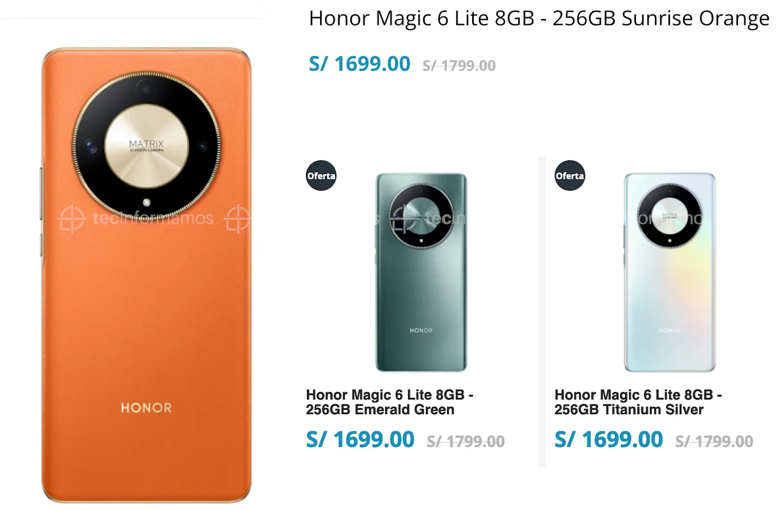 Actualización (26/02/2024) – El HONOR Magic6 Lite cuesta S/1699 en Perú (8/256GB) y su lanzamiento oficial en Perú se llevará a cabo durante la segunda semana de marzo.