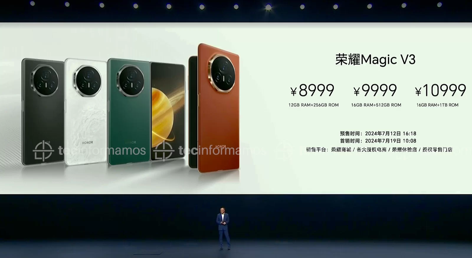 El HONOR Magic V3 cuesta CNY8999 ($1240) por la configuración con 12/256GB, mientras que las configuraciones con 16/512GB y 16GB/1TB cuestan CNY9999 ($1378) y CNY10999 ($1515), respectivamente.