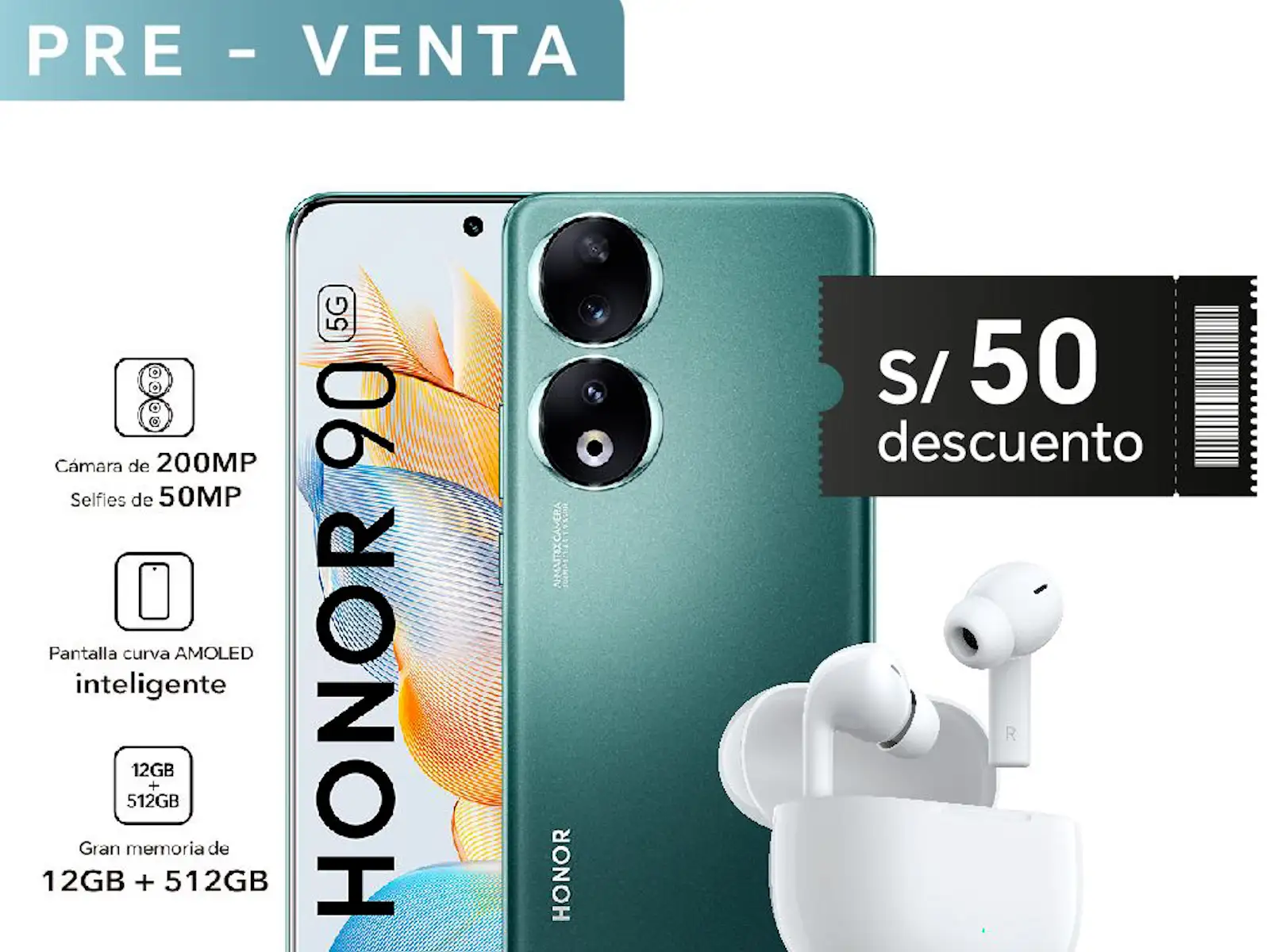El HONOR 90 cuesta S/2399 en Perú (incluye HONOR X3 Lite + vale de descuento S/50) y está disponible en 2 colores (Zafiro Real, Emerald Green); este smartphone llega con 12/512GB.