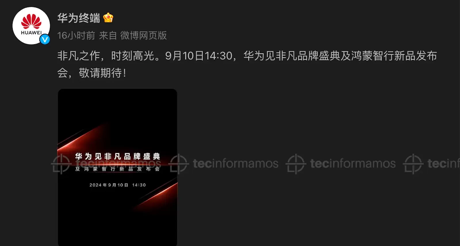 El Tri-Fold de HUAWEI verá la luz el 10 de septiembre en un evento organizado por la firma china, en el cual también se presentarán novedades para los autos que comercializan en China.
