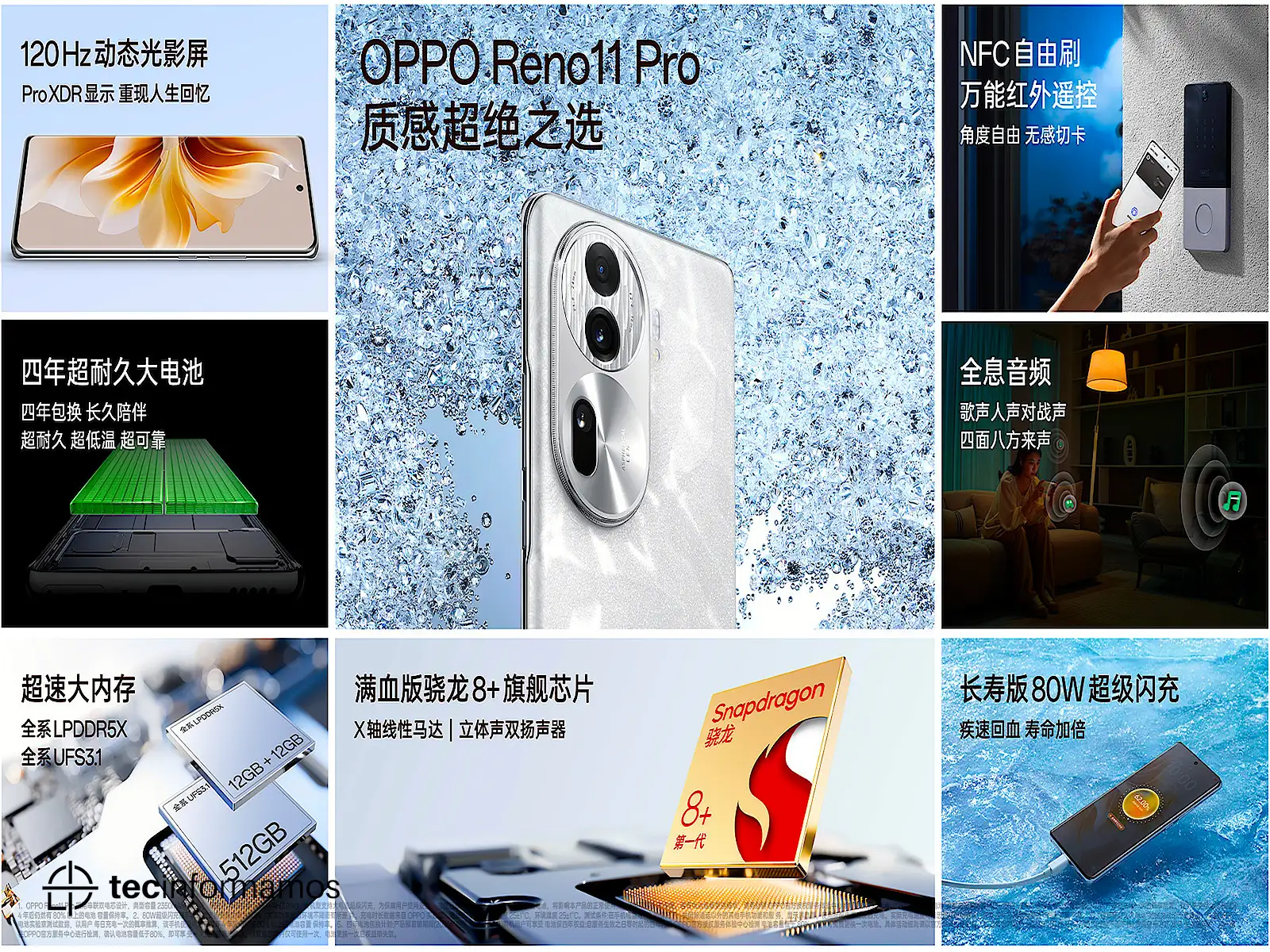Por su parte, el Reno 11 Pro es potenciado por el procesador Snapdragon 8+ Gen 1 y la configuración más top viene con 12GB RAM y 512GB de almacenamiento interno.