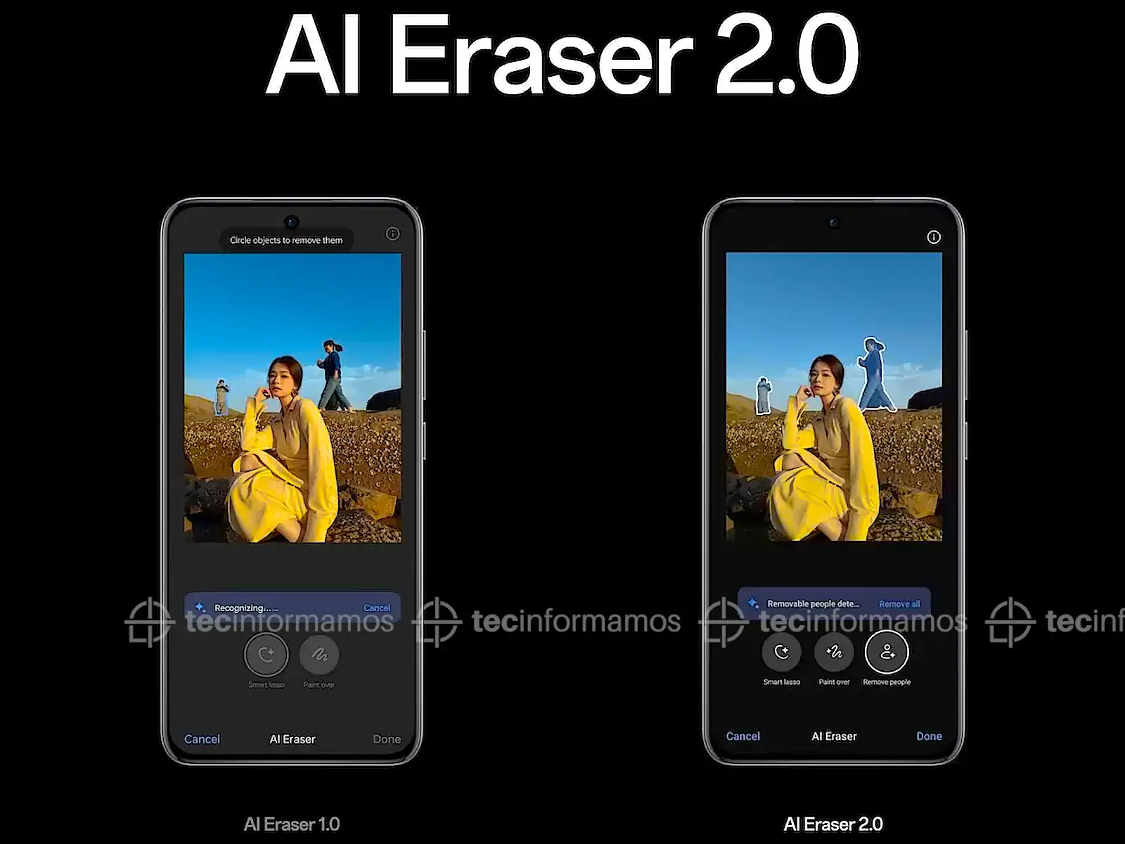 Esta herramienta permite eliminar fácilmente a los extraños que pasan por las fotos con un simple toque, gracias a la capacidad de la función para identificar automáticamente a personas y objetos no deseados.
