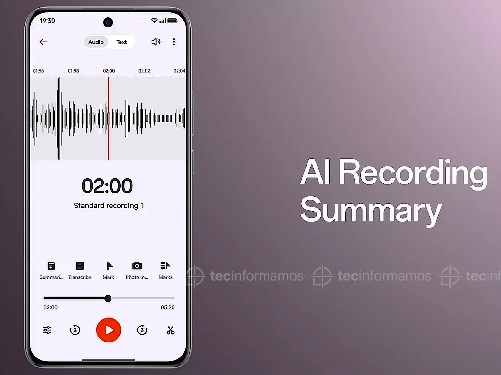 Extrae de forma inteligente resúmenes de texto de una grabación de voz y los organiza en notas, con información como listas de tareas pendientes, horarios, ubicaciones y otros detalles resaltados y formateados para una mejor legibilidad.