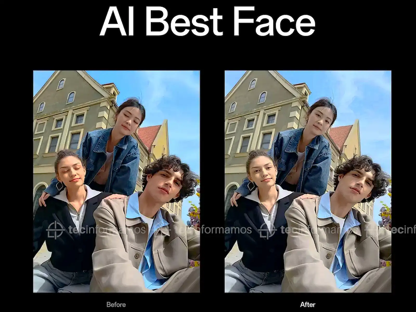 Garantiza que todos en una foto grupal, incluso aquellos que están lejos de la cámara, sean capturados con una claridad excepcional al restaurar detalles de alta resolución como el contorno facial, el cabello y las cejas.