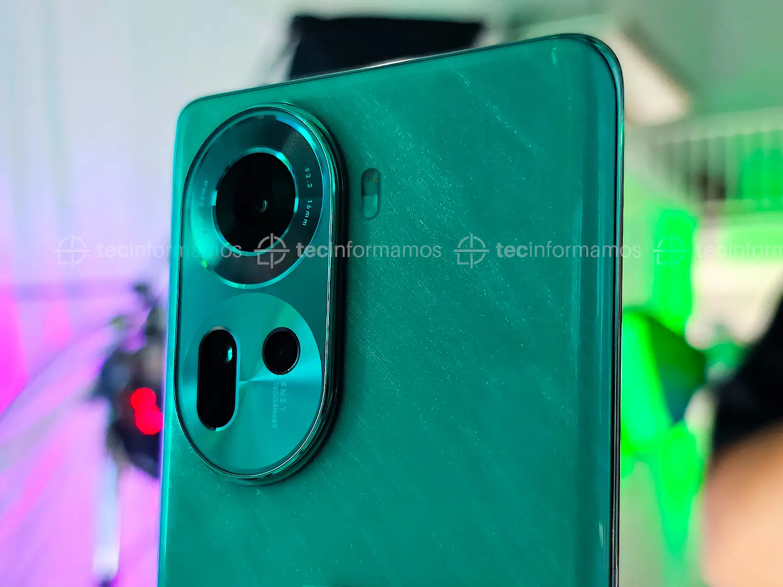 El Reno11 5G llama la atención por su cámara telefoto de 32MP (sensor Sony IMX709, f/2.0, zoom óptico 2X, 47 mm), la cual captura retratos que rivalizan con los capturados por cámaras reflex.