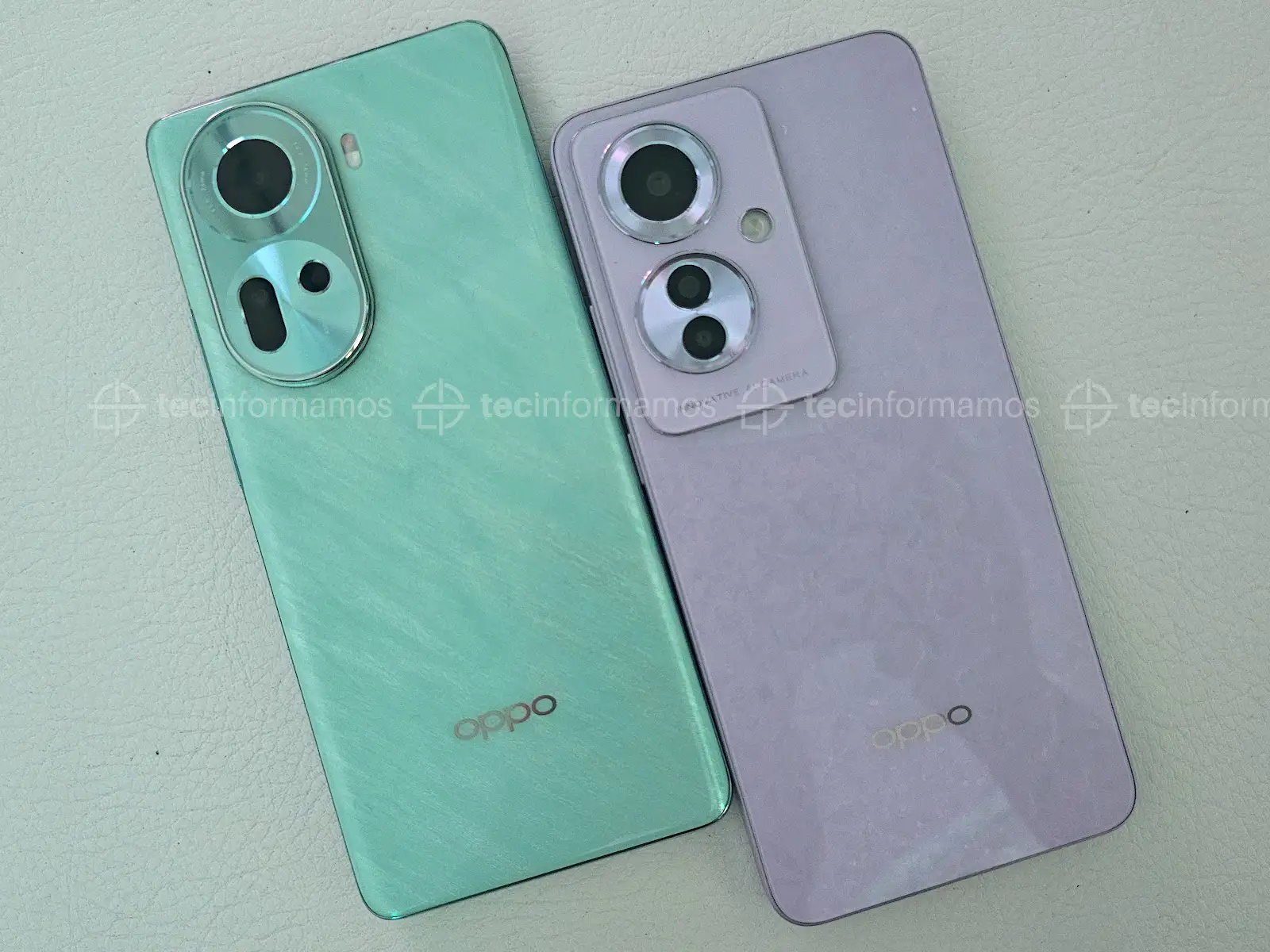 El OPPO Reno11 5G está disponible en 2 colores (Verde Agua, Gris Titanio). Por su parte, el OPPO Reno11 F también está disponible en 2 colores (Morado Coral, Verde Palmera).