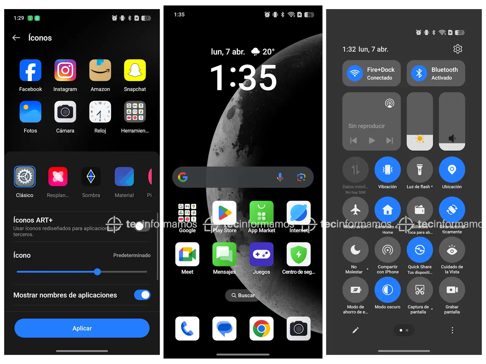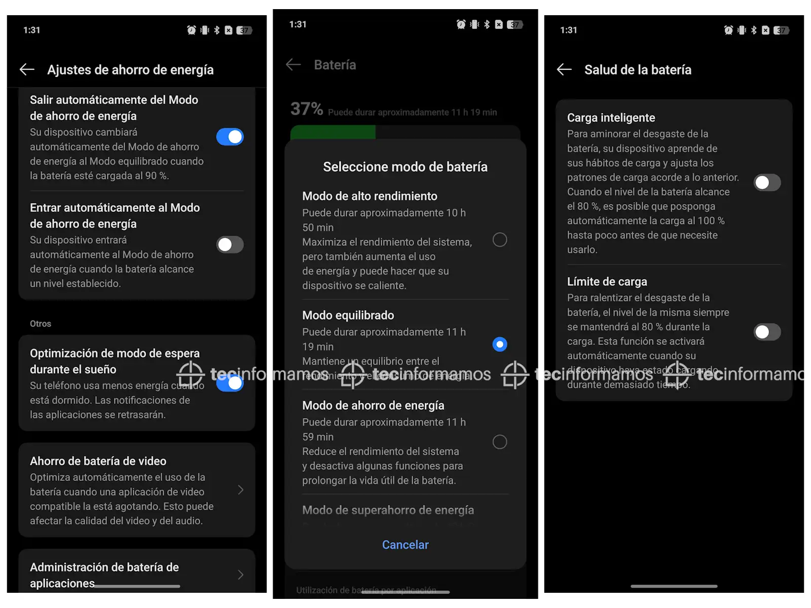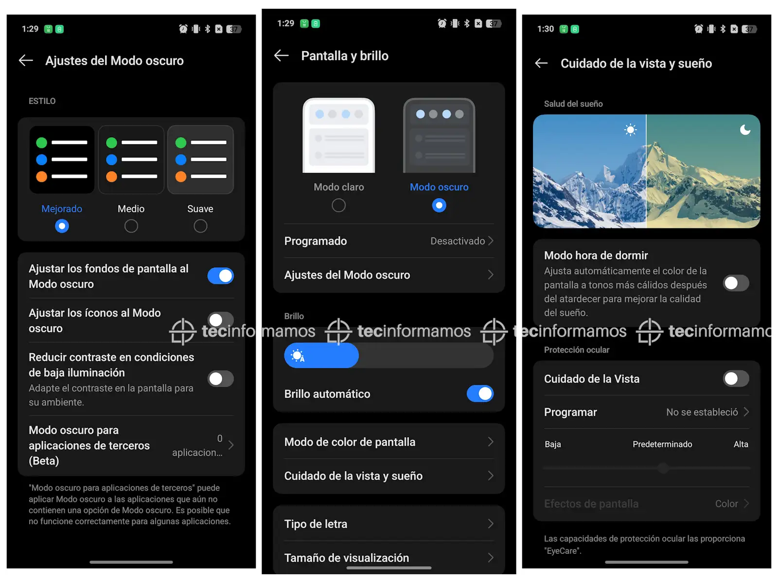 Además, la pantalla viene con un Modo Oscuro que se puede personalizar con 3 estilos (Mejorado, Medio, Suave), así como también con la opción de poder reducir el contraste en condiciones de baja iluminación.