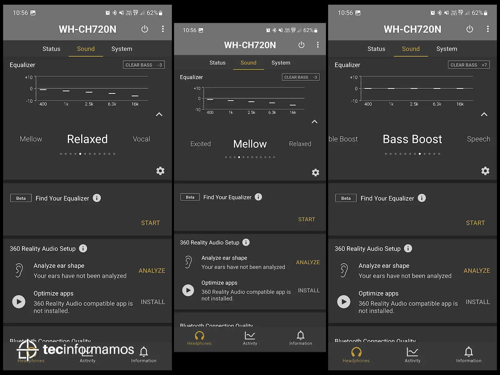 Headphones Connect cuenta con un sinfín de funciones y opciones de personalización de sonido, así como también varios presets como  Trebble Boost, Vocal, Bright, Relaxed, Mellow, Excited, Speech, Bass Boost, entre varios otros.