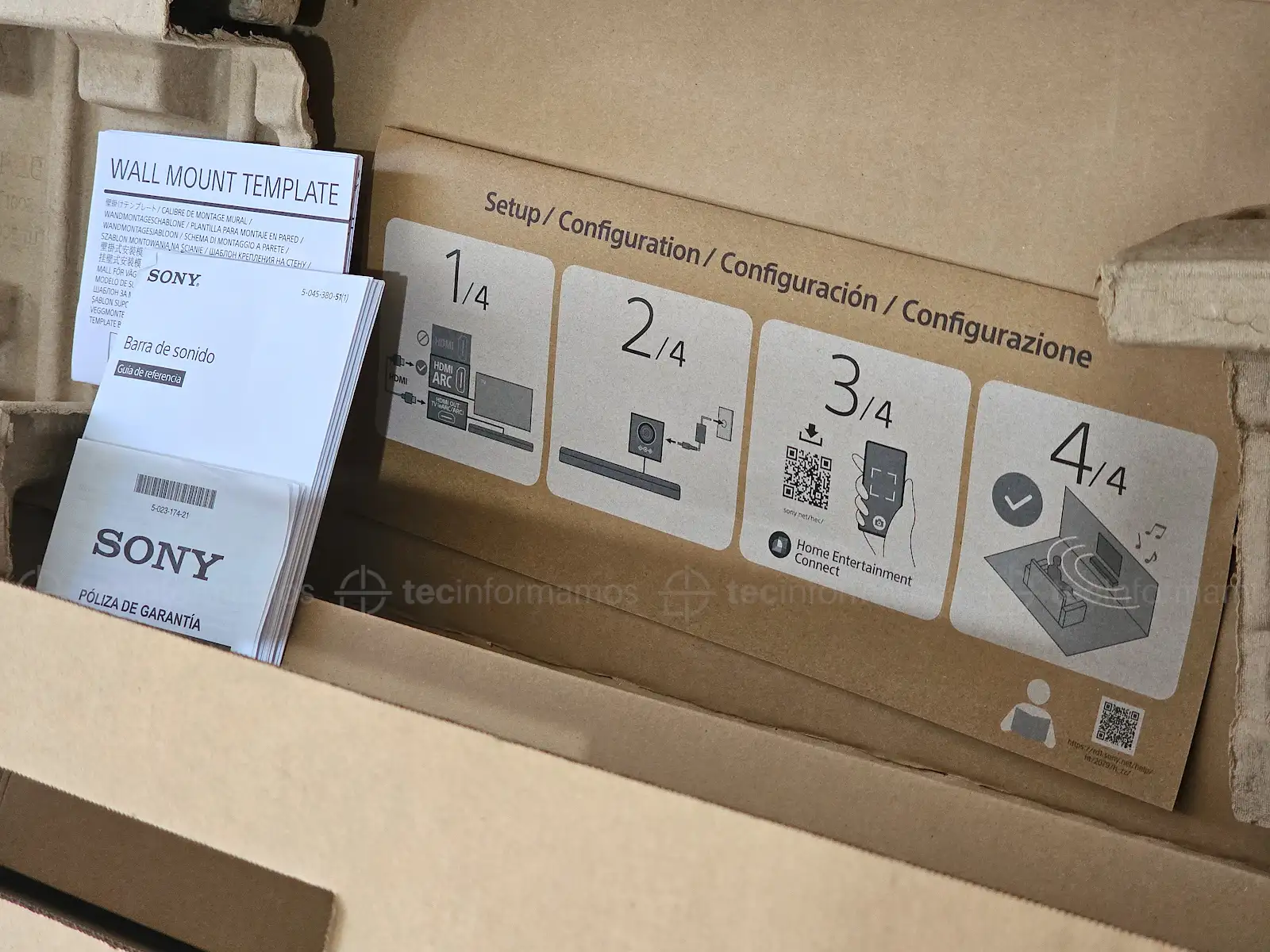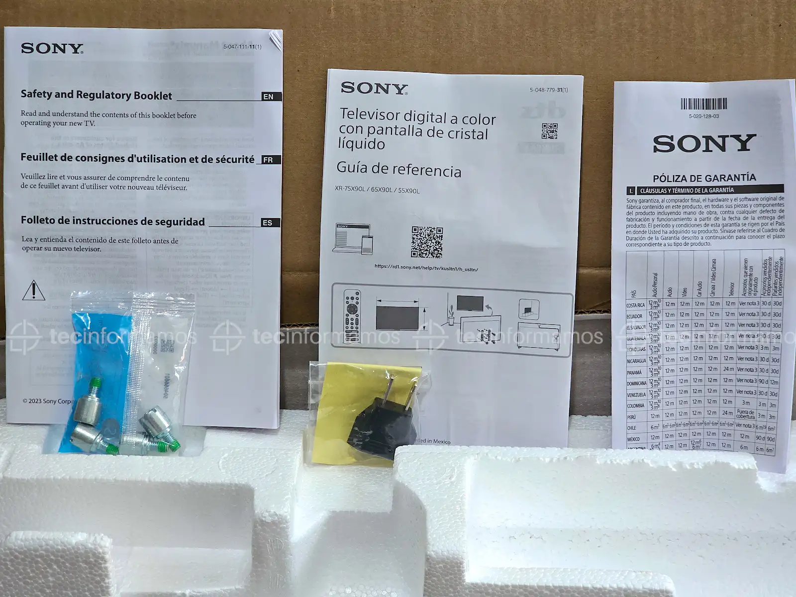 Como siempre, te recomiendo pedir ayuda a un familiar o amigo para la instalación, ya que el peso bruto de la caja es 24 kg (el X90L pesa 17.7 kg con el soporte de sobremesa incluido).