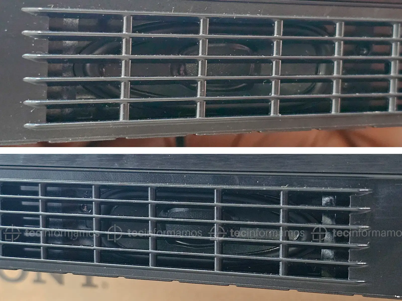 Los 2 altavoces de tipo Bass Reflex están ubicados en la parte inferior del TV, mientras que los otros 2 altavoces (tweeters) se encuentran ubicados en la parte superior trasera del TV (uno a la derecha y otro a la izquierda).