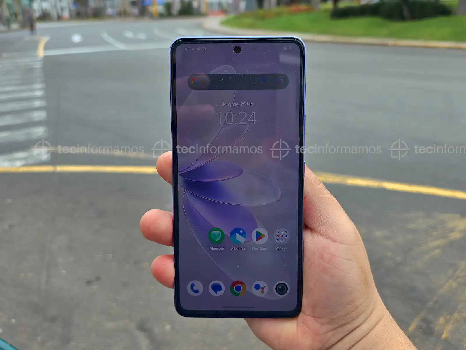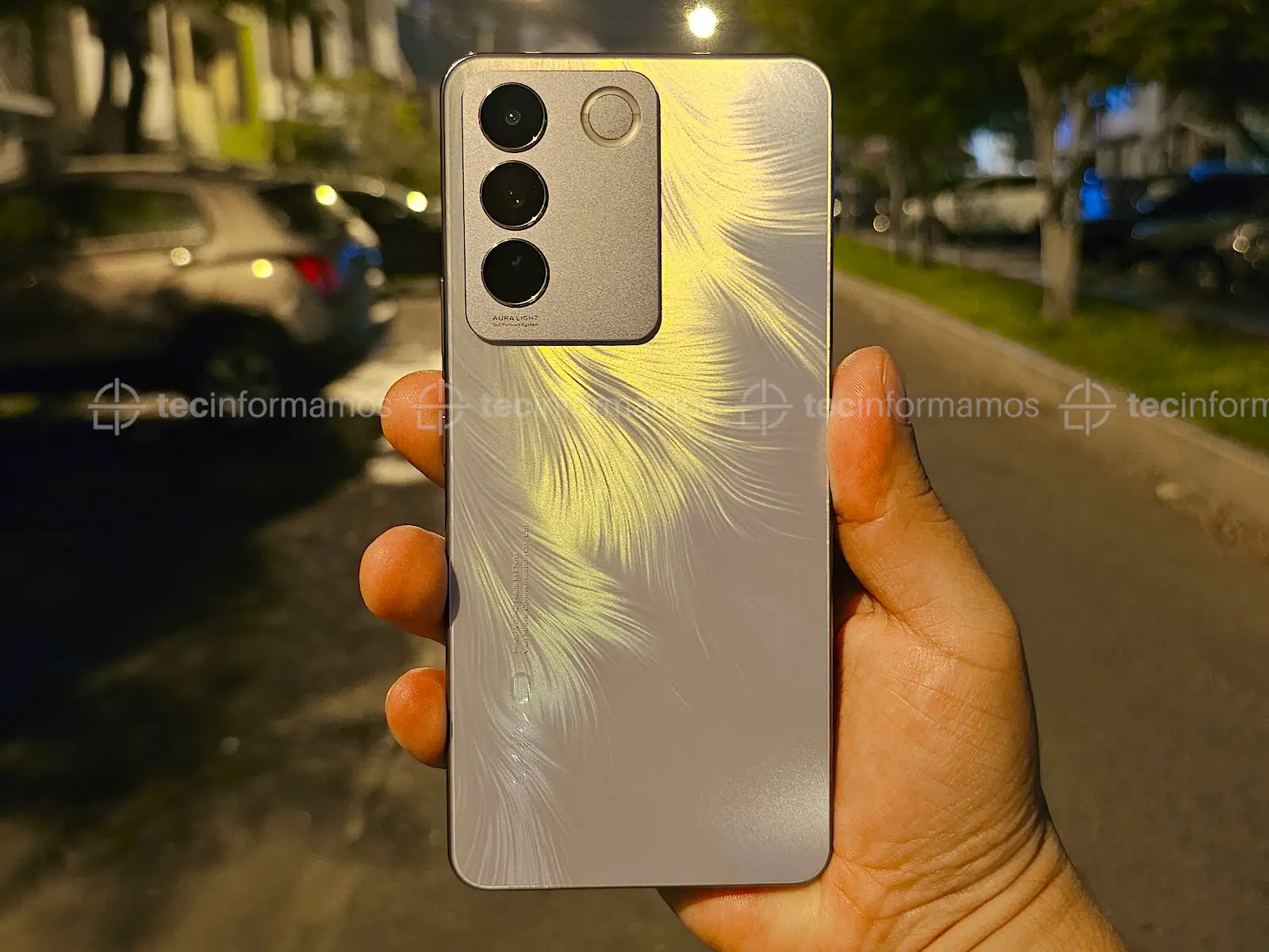 Por último, también me gustó el diseño del V25e y no solo por su color Violeta Lavanda, sino también porque es un smartphone bastante delgado y ligero (7.7 mm de grosor y 185 g).