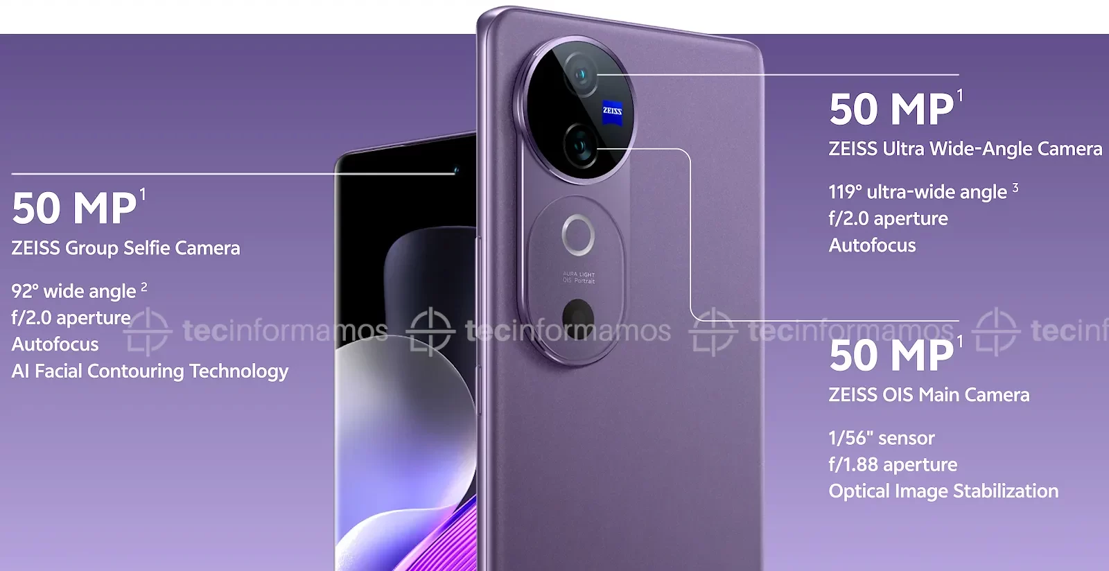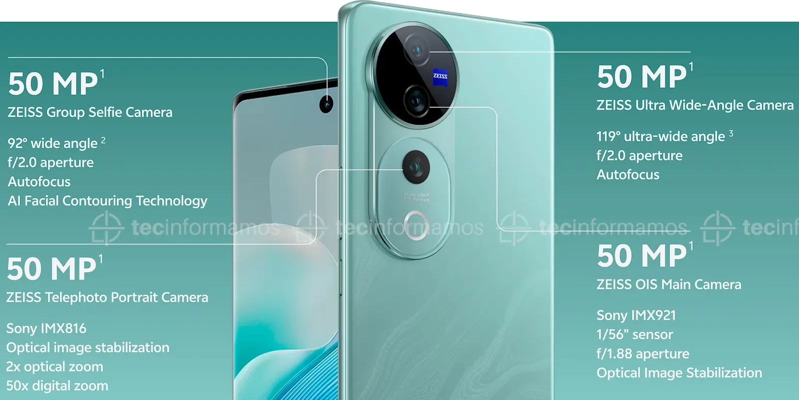 También comparten la misma cámara UGA de 50MP, así como también la misma cámara frontal de 50MP. Todos los lentes de estos smartphones están firmados por ZEISS, lo que garantiza colores claros y menos distorsión/reflejos que con otros lentes.