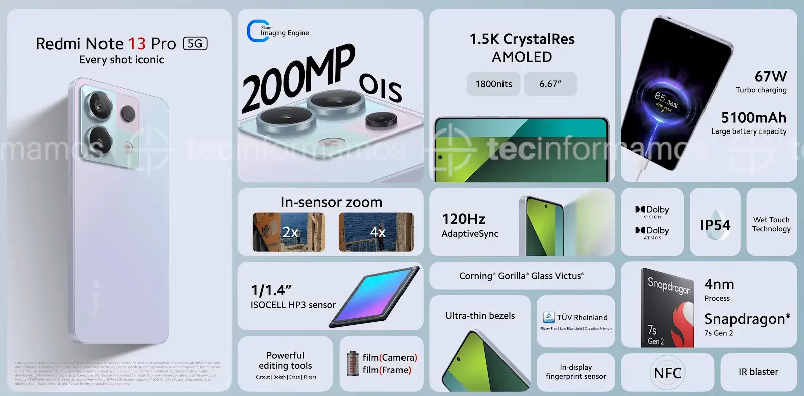 Por otro lado, el Redmi Note 13 Pro 5G también un procesador bastante potente en la forma del Snapdragon 7s Gen 2, así como también una batería de 5100mAh (carga rápida de 67W).