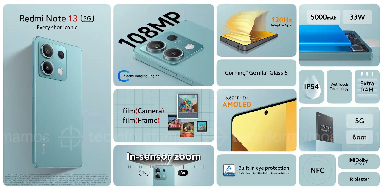 El primero, Note 13 Pro, trae un procesador MediaTek Helio G99-Ultra y también se puede configurar con hasta 12GB RAM y 512GB de almacenamiento interno.