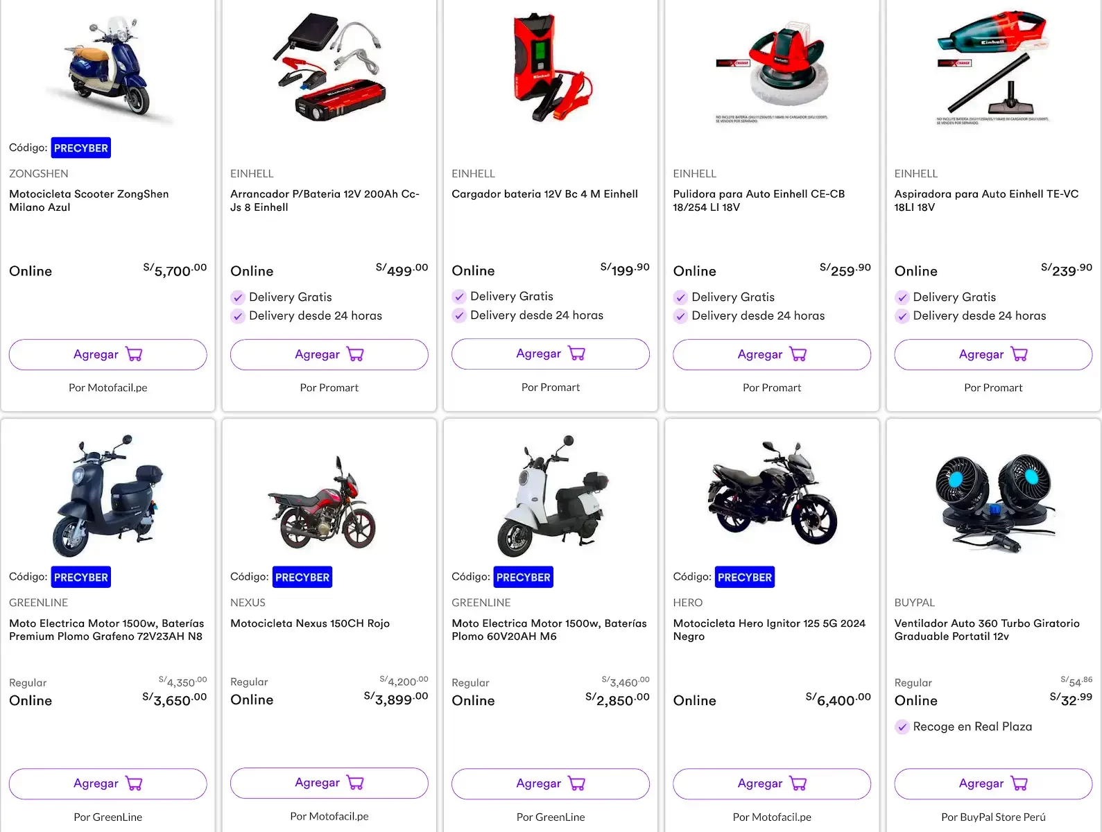 Aquí podrás comprar, por ejemplo, una motocicleta Zongshen por S/5700, mientras que una aspiradora para auto de marca Einhell te costará S/239.90.