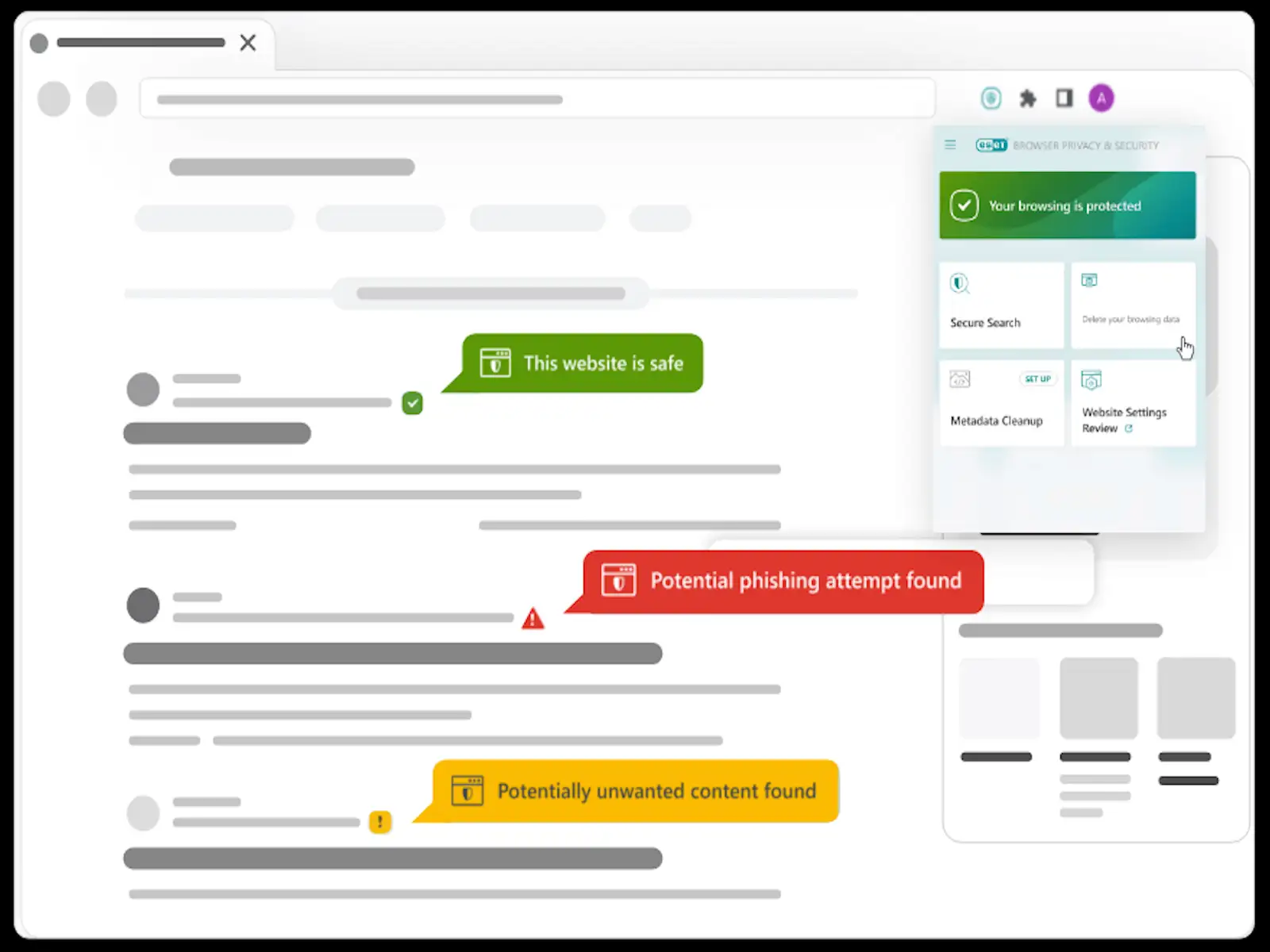 Estas características también se complementan con la funcionalidad de extensión del navegador (Privacidad y seguridad del navegador), para garantizar que la navegación del usuario esté protegida.
