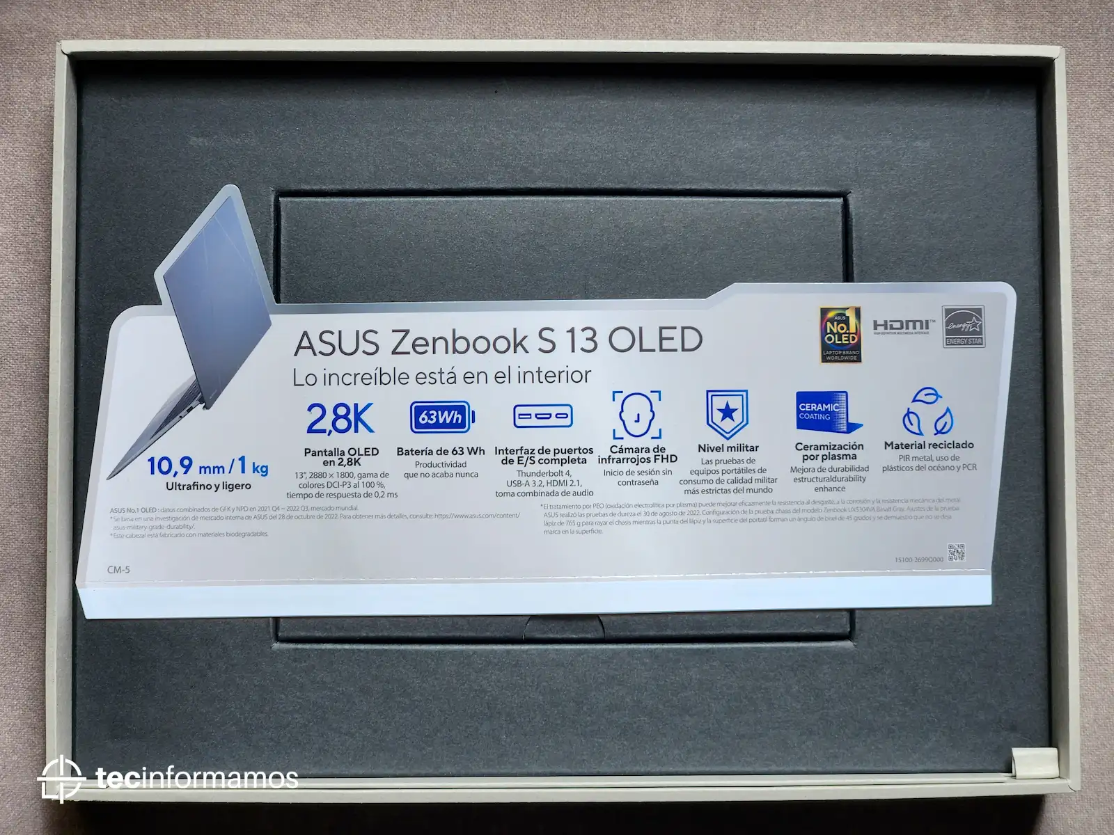 Nota: La ASUS Zenbook S 13 OLED es una laptop eco-amigable, ya que muchas de sus partes fueron fabricadas utilizando materiales reciclados.