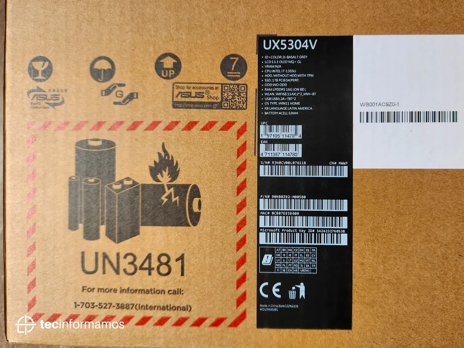 La caja de la ASUS Zenbook S 13 OLED incluye: