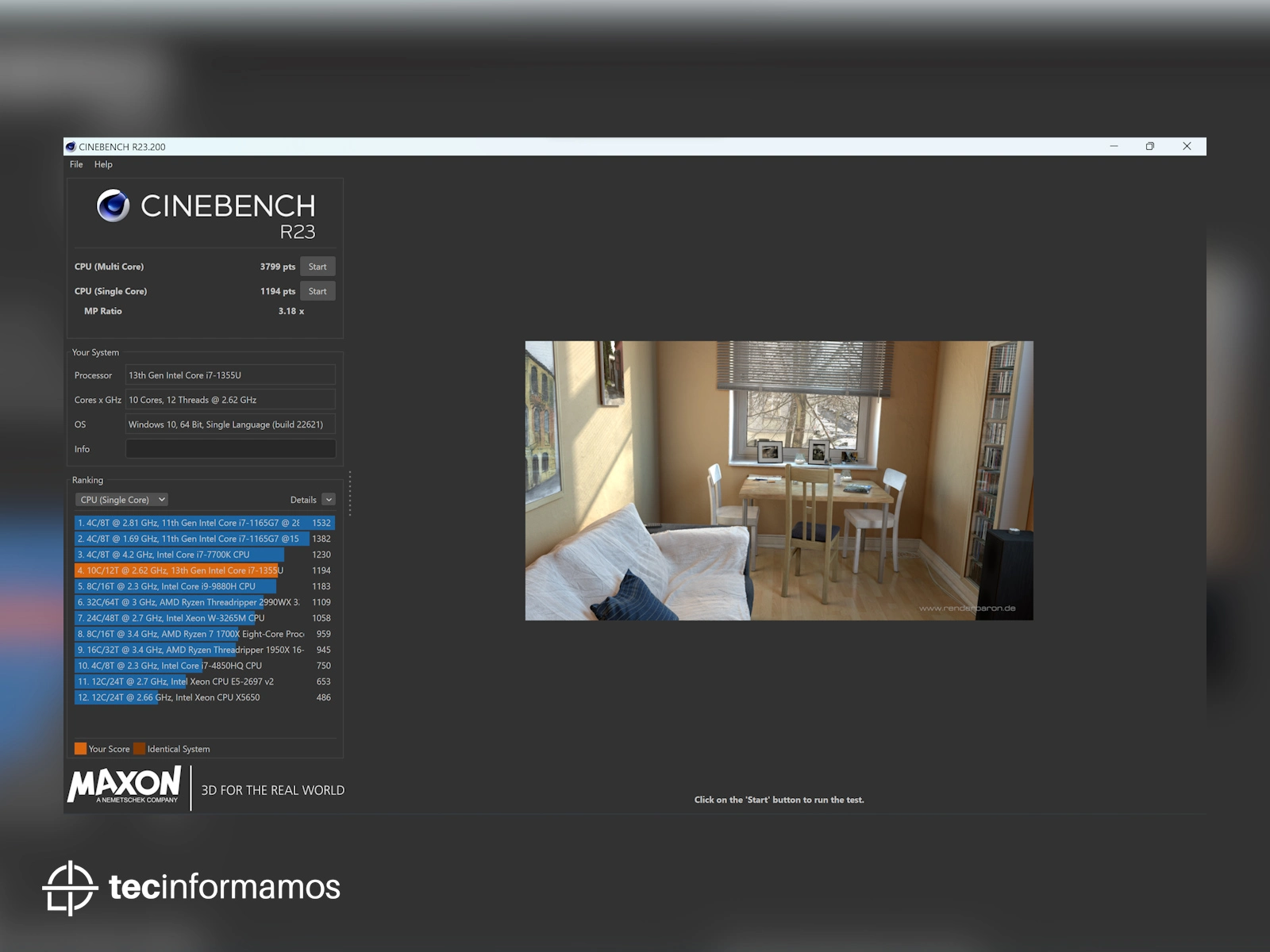 - CINEBENCH (Single Core) – 1194 puntos