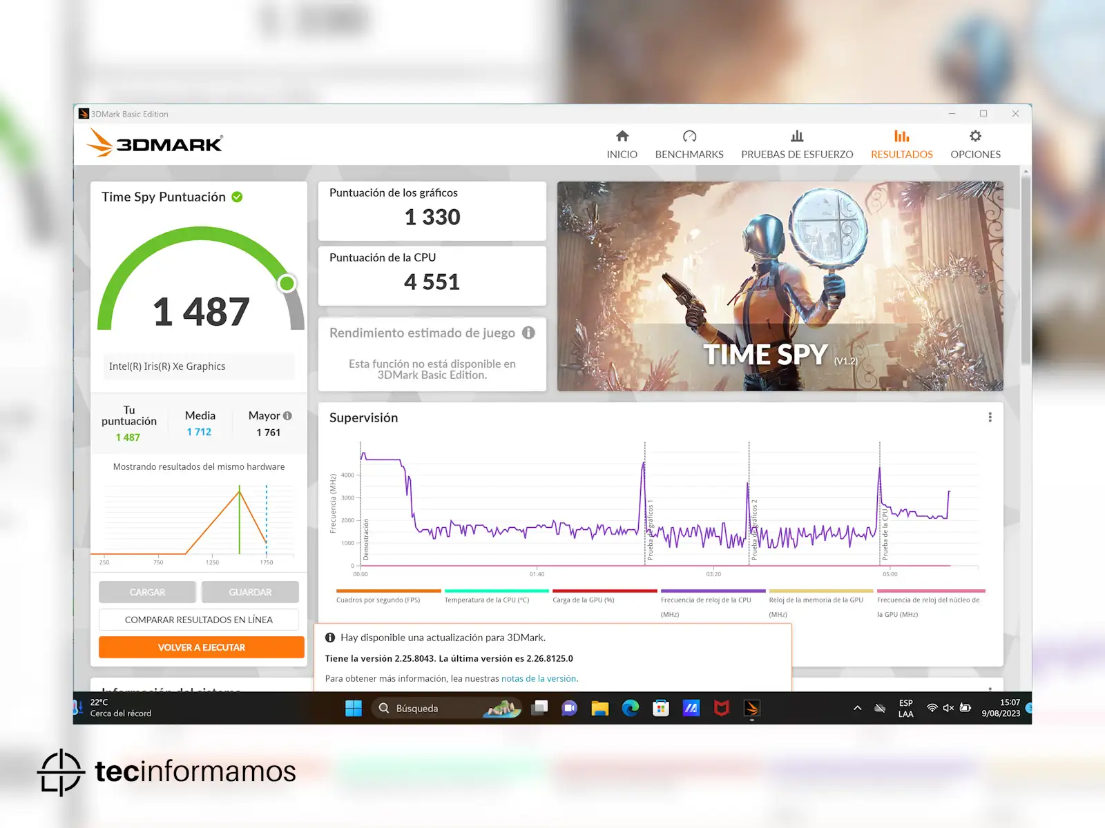- 3DMARK Time Spy – 1487 puntos