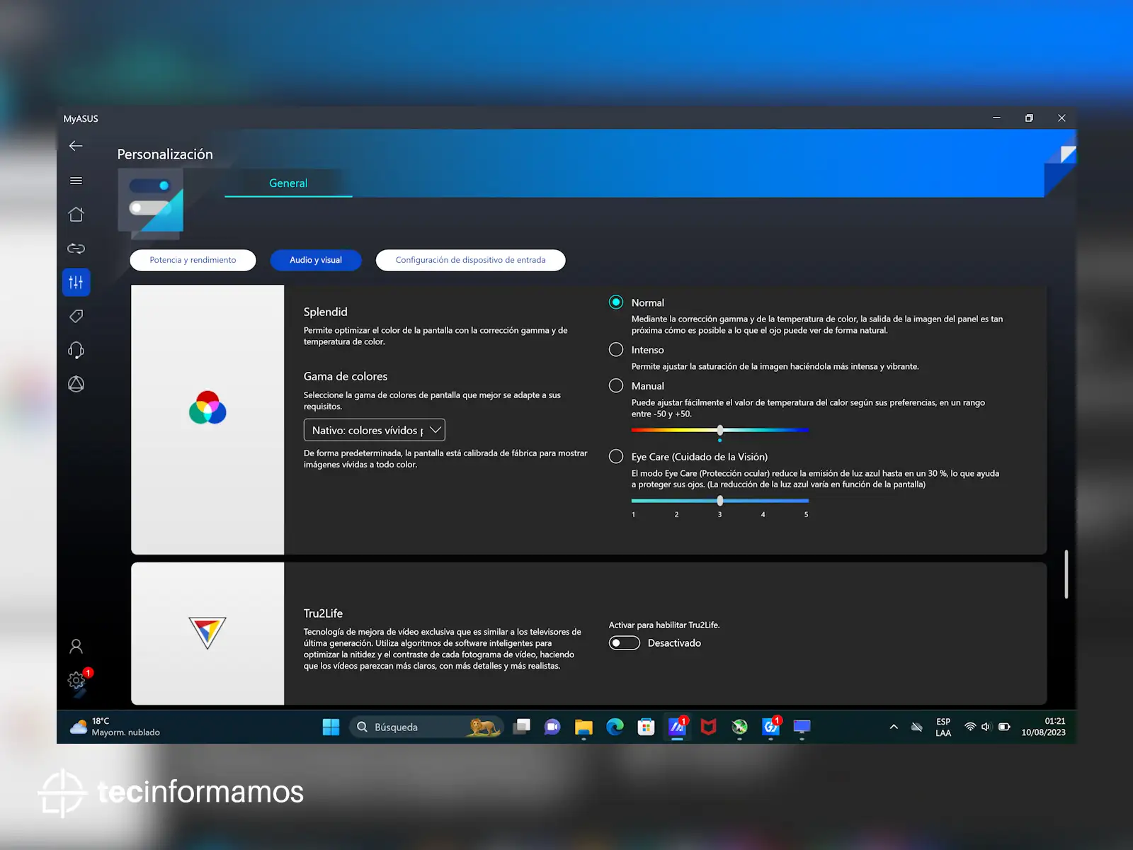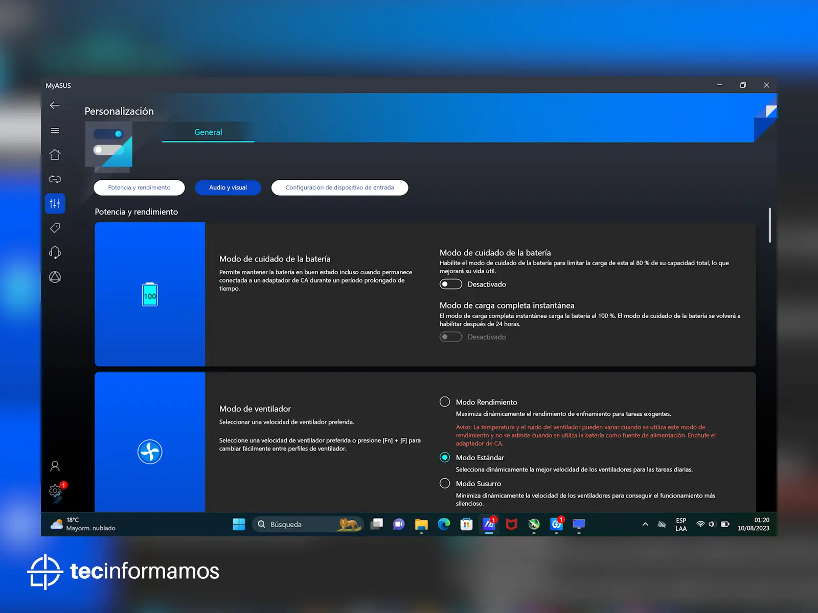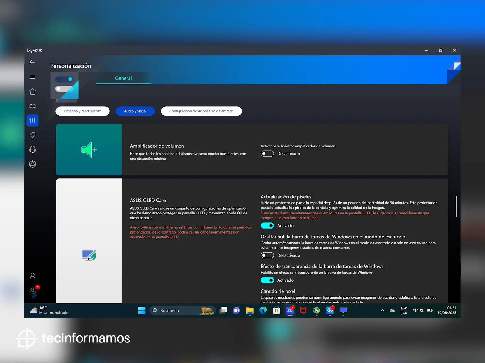 Desde MyASUS puedes controlar y personalizar prácticamente todas las funciones de la laptop, desde cambiar el modo de ventilación, activar el Amplificador de volumen o personalizar el uso de ASUS OLED Care.