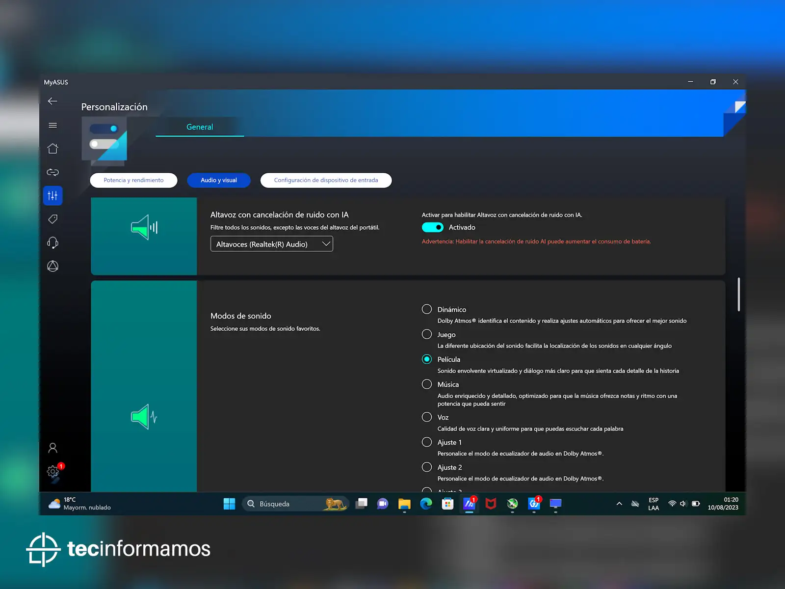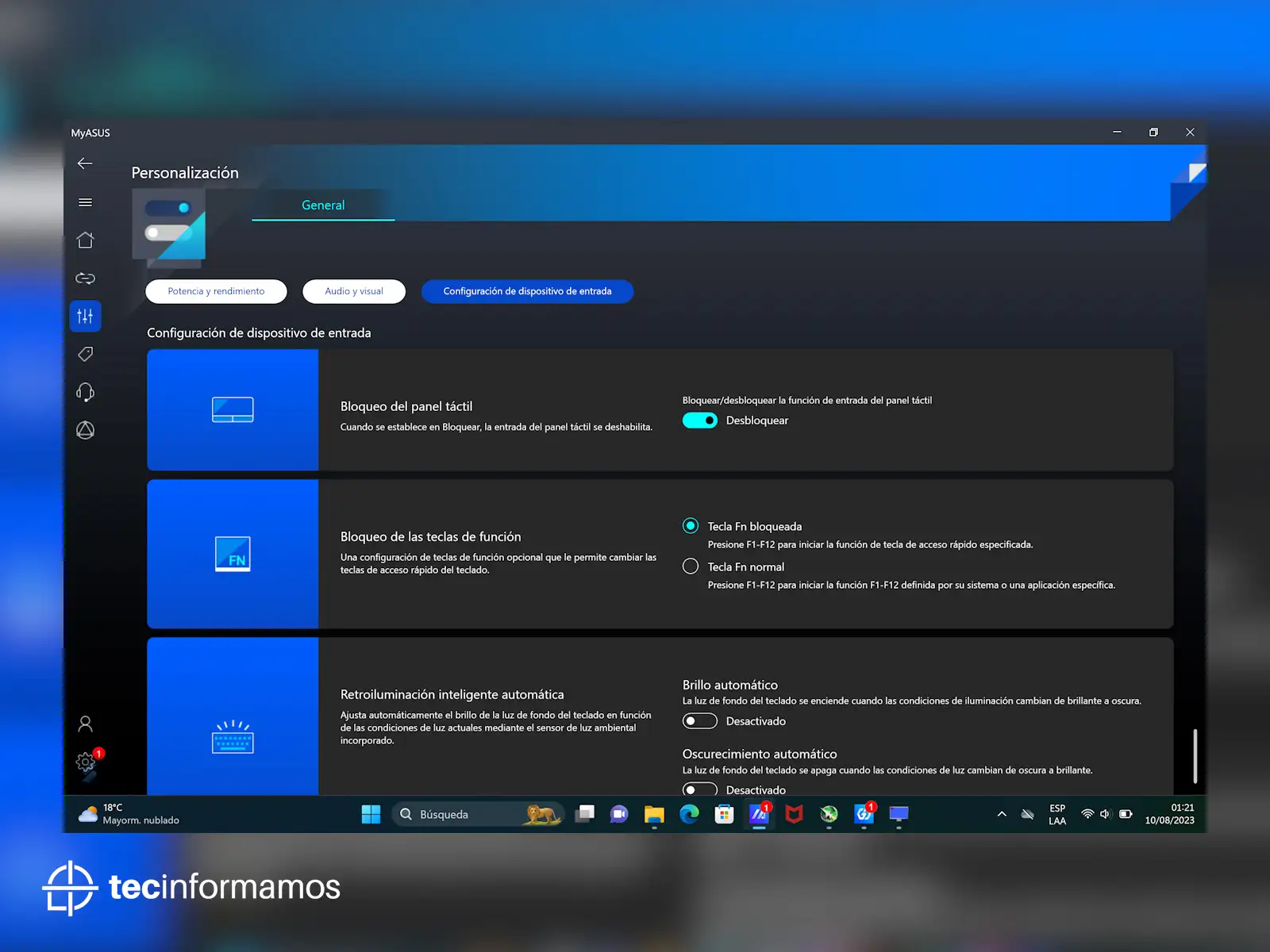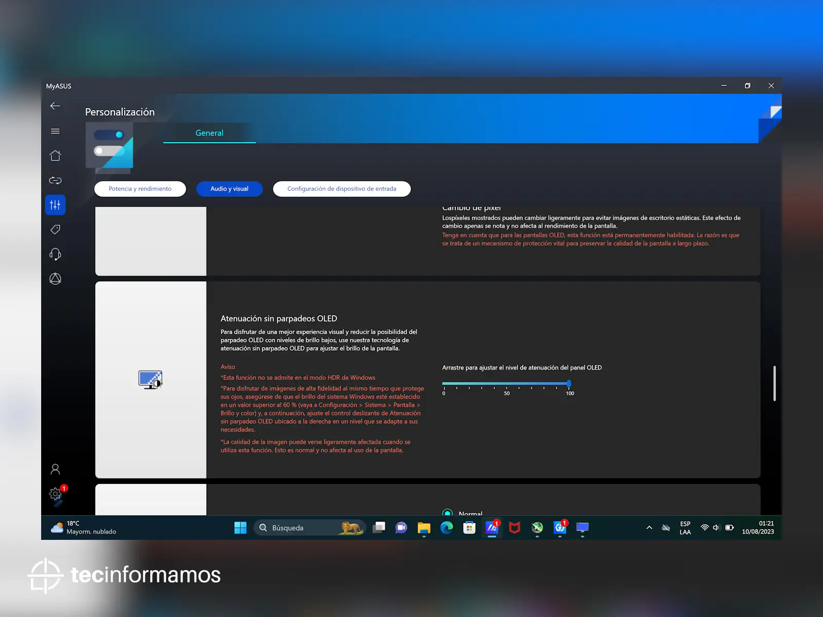 Desde MyASUS puedes controlar y personalizar prácticamente todas las funciones de la laptop, desde cambiar el modo de ventilación, activar el Amplificador de volumen o personalizar el uso de ASUS OLED Care.