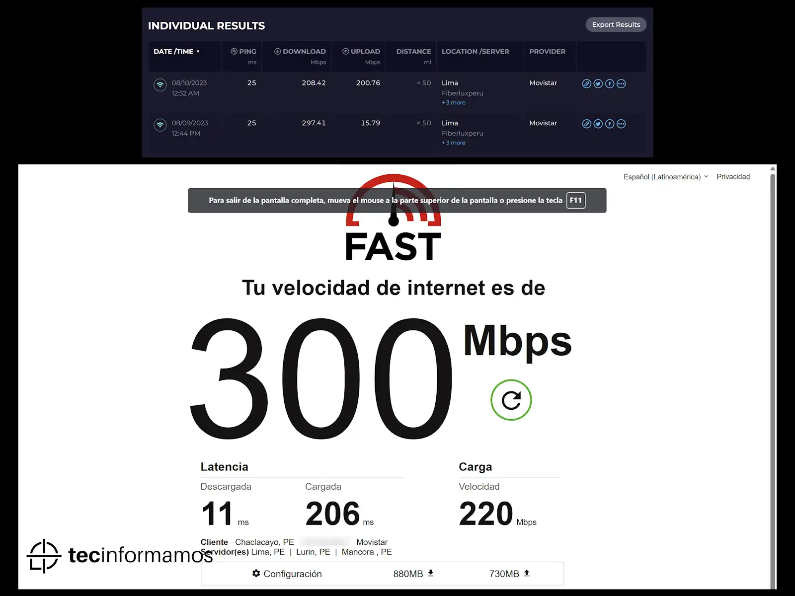 Nota: Los resultados obtenidos en conectividad varían y dependen de varios factores (operador, velocidad de conexión contratada, tecnología de conexión, horario de la prueba, etc.).